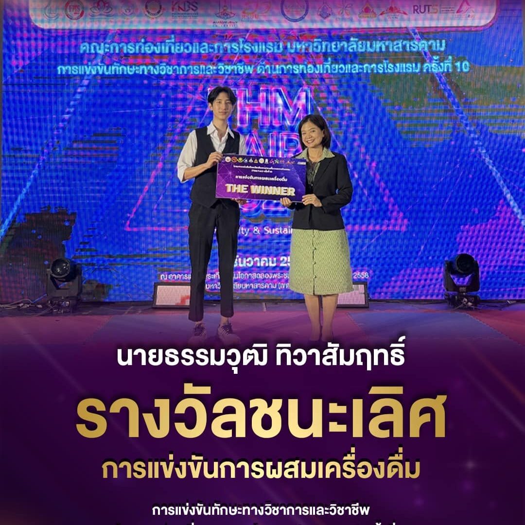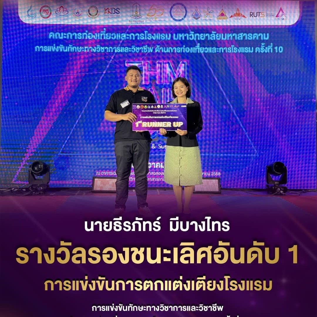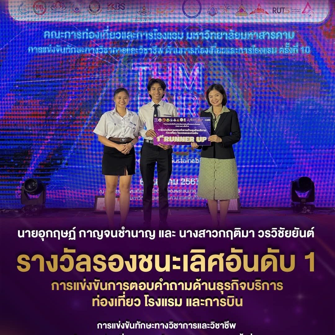 นักศึกษาคณะการท่องเที่ยวและอุตสาหกรรมบริการ เก่งอีกแล้ว !! กับการคว้ารางวัลการแข่งขันทักษะทางวิชาการและวิชาชีพ ด้านการท่องเที่ยวและการโรงแรม (THM Fair) ครั้งที่ 10 ณ มหาวิทยาลัยมหาสารคาม