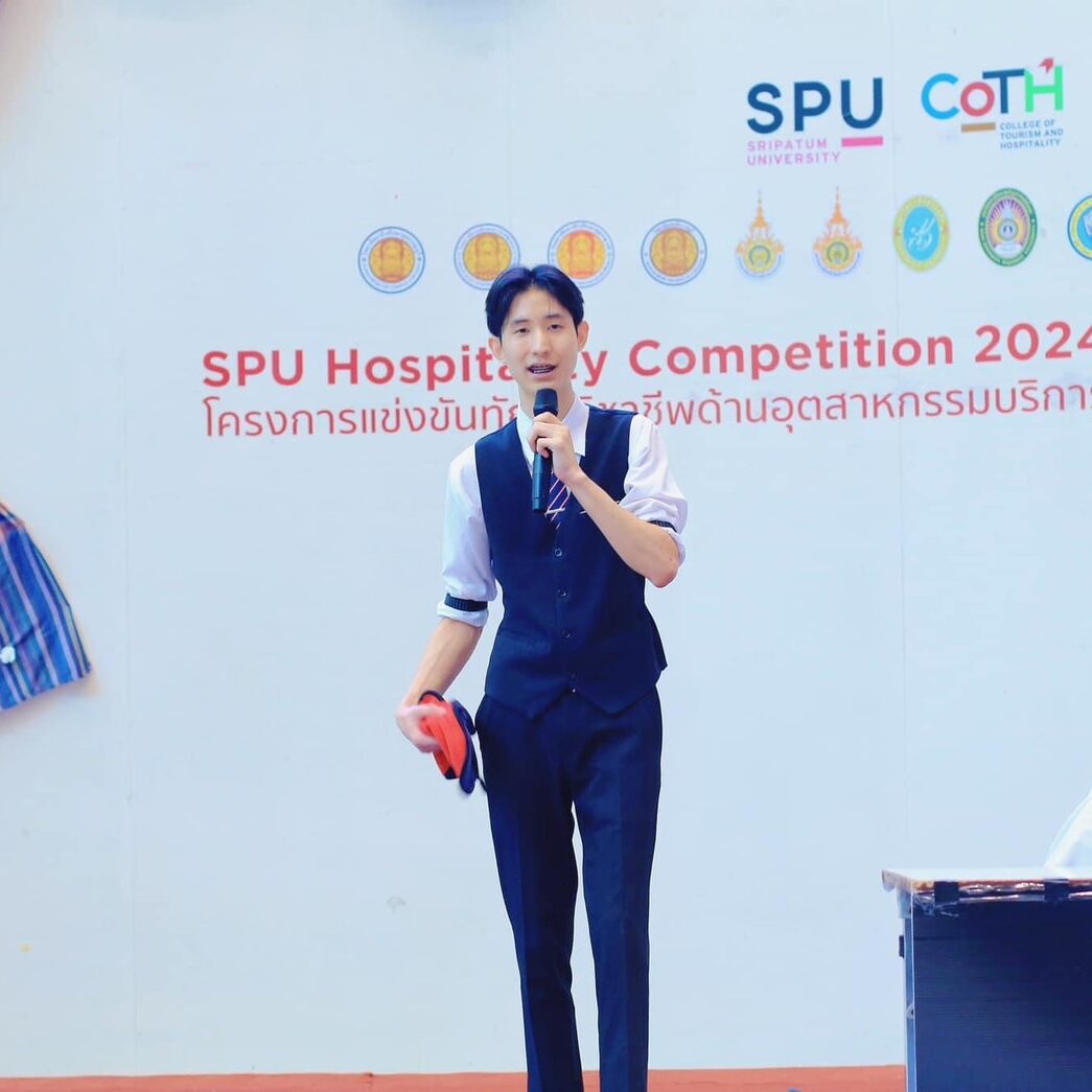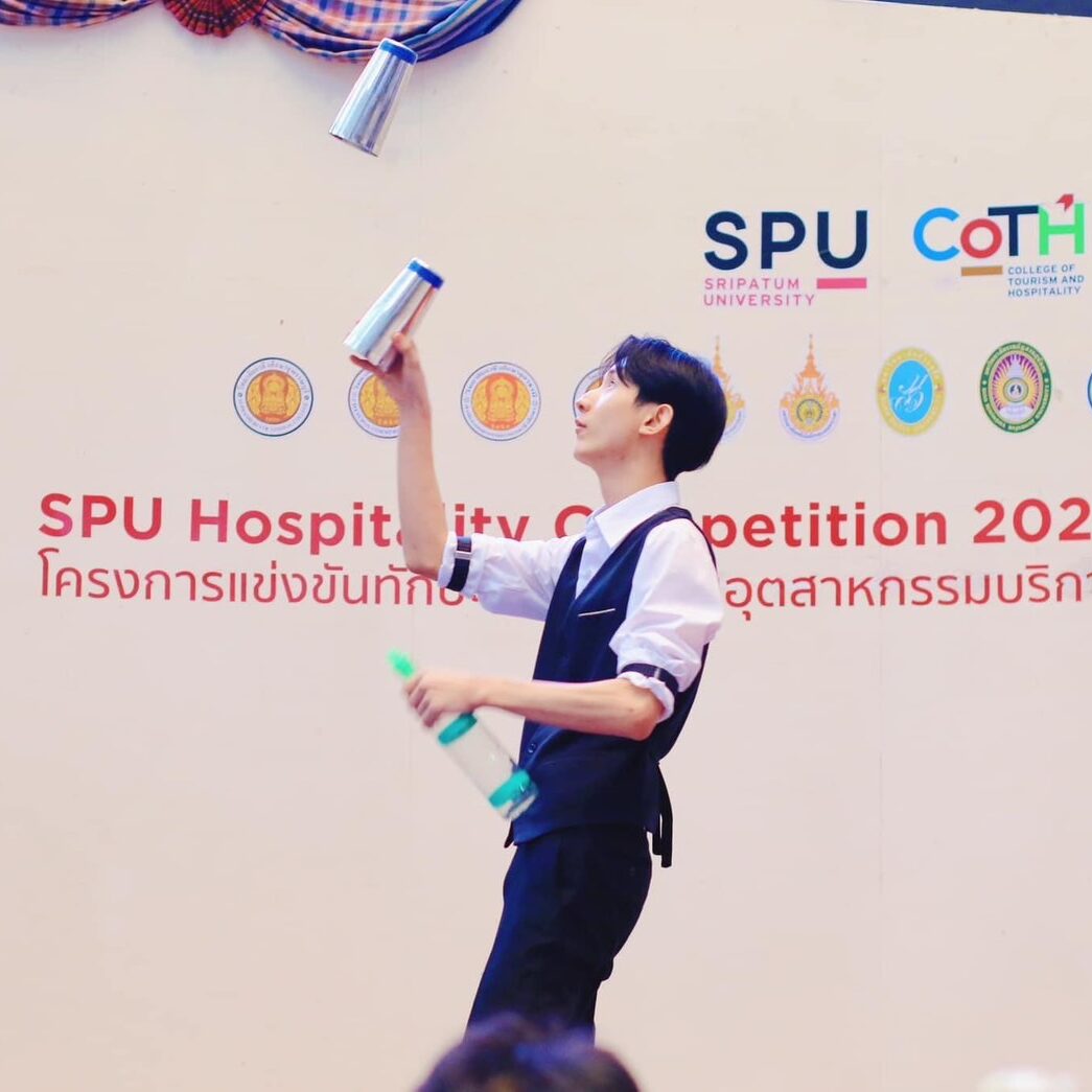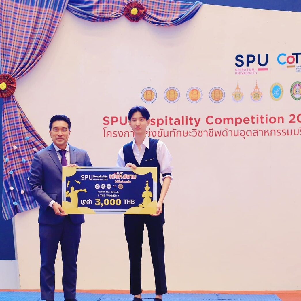 ขอแสดงความยินดี ให้กับพี่ปอนด์ ธรรมวุฒิ คณะการทีองเที่ยวและอุตสาหกรรมบริการ มหาวิทยาลัยหอการค้าไทย ที่โชว์สกิลผสมเครื่องดื่มสุดปัง จนได้รางวัลชนะเลิศ การแข่งขัน Flair Bartender ในงาน SPU Hospitality Competition 2024 ภายใต้แนวคิด “สเน่ห์สยามวิถีถิ่นร่วมสมัย” ณ มหาวิทยาลัยศรีปทุม(บางเขน) ยินดีด้วยกับพี่ปอนด์นะค้า