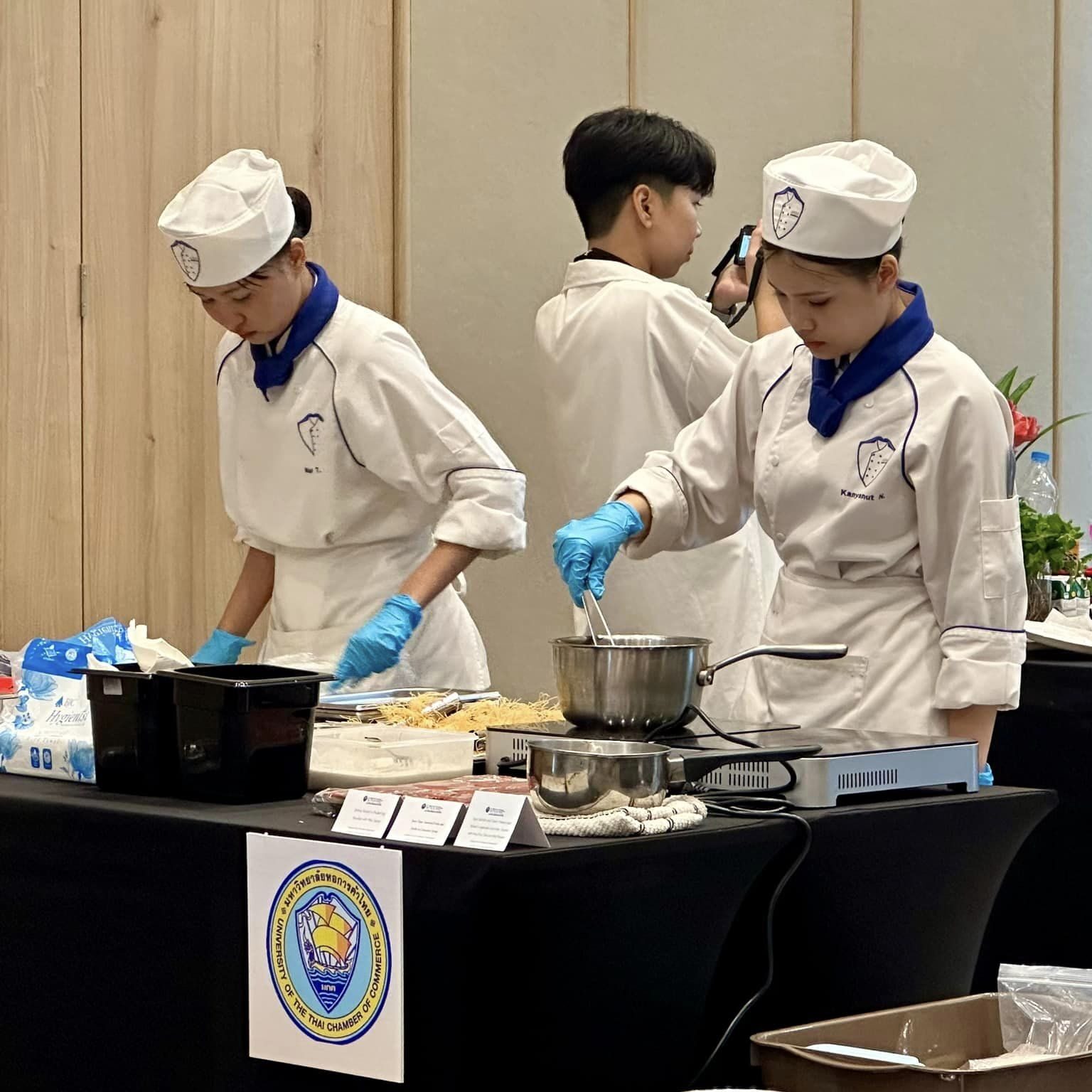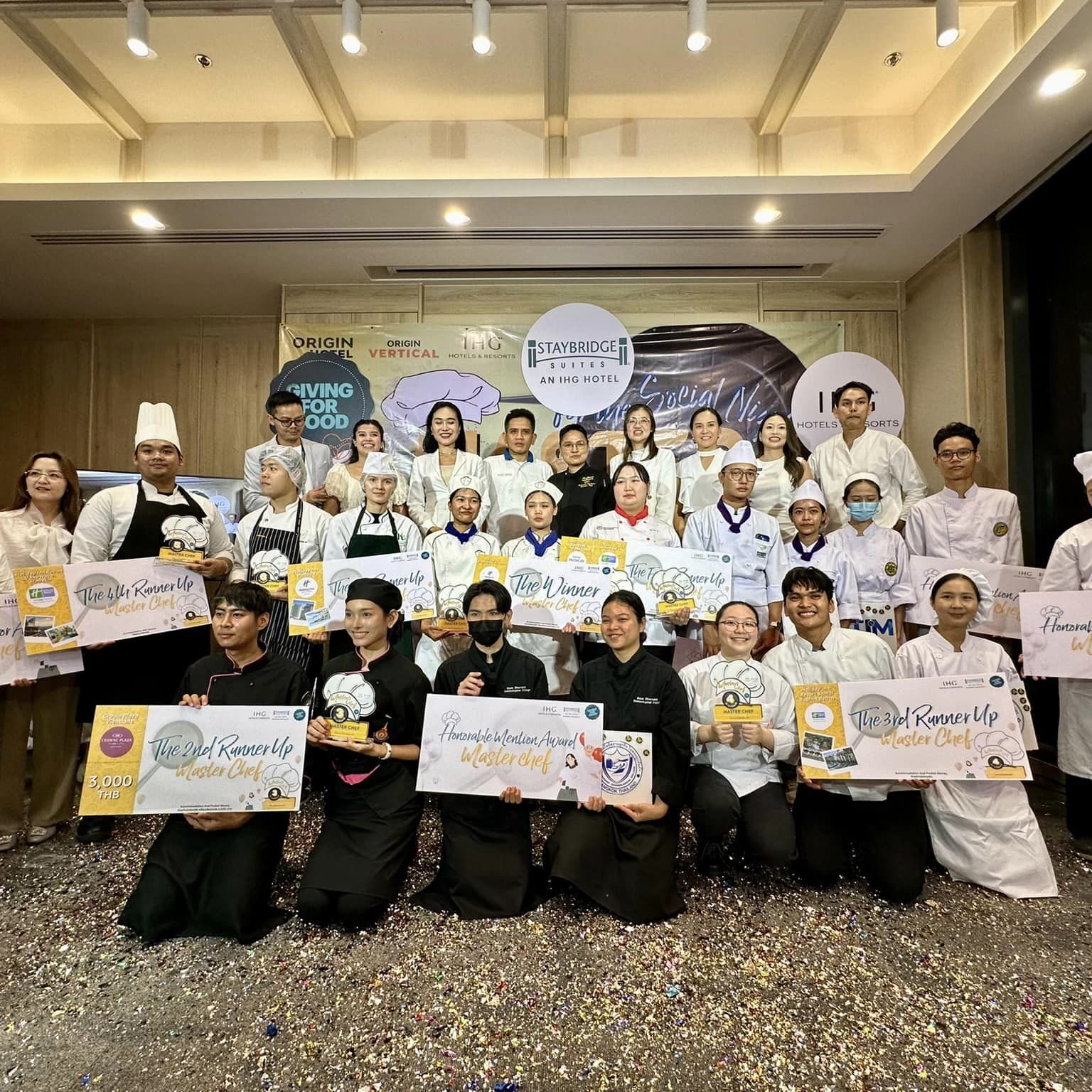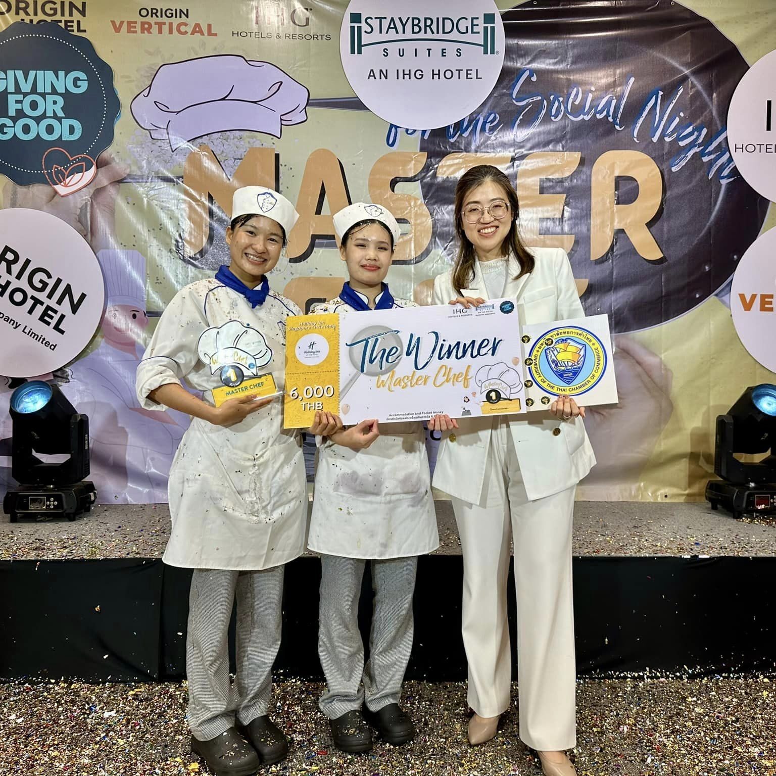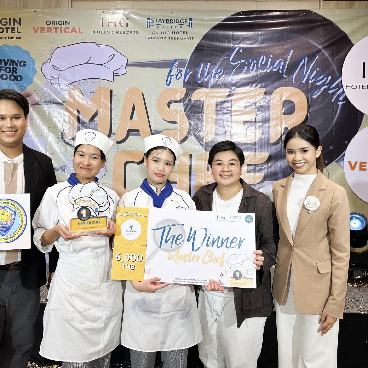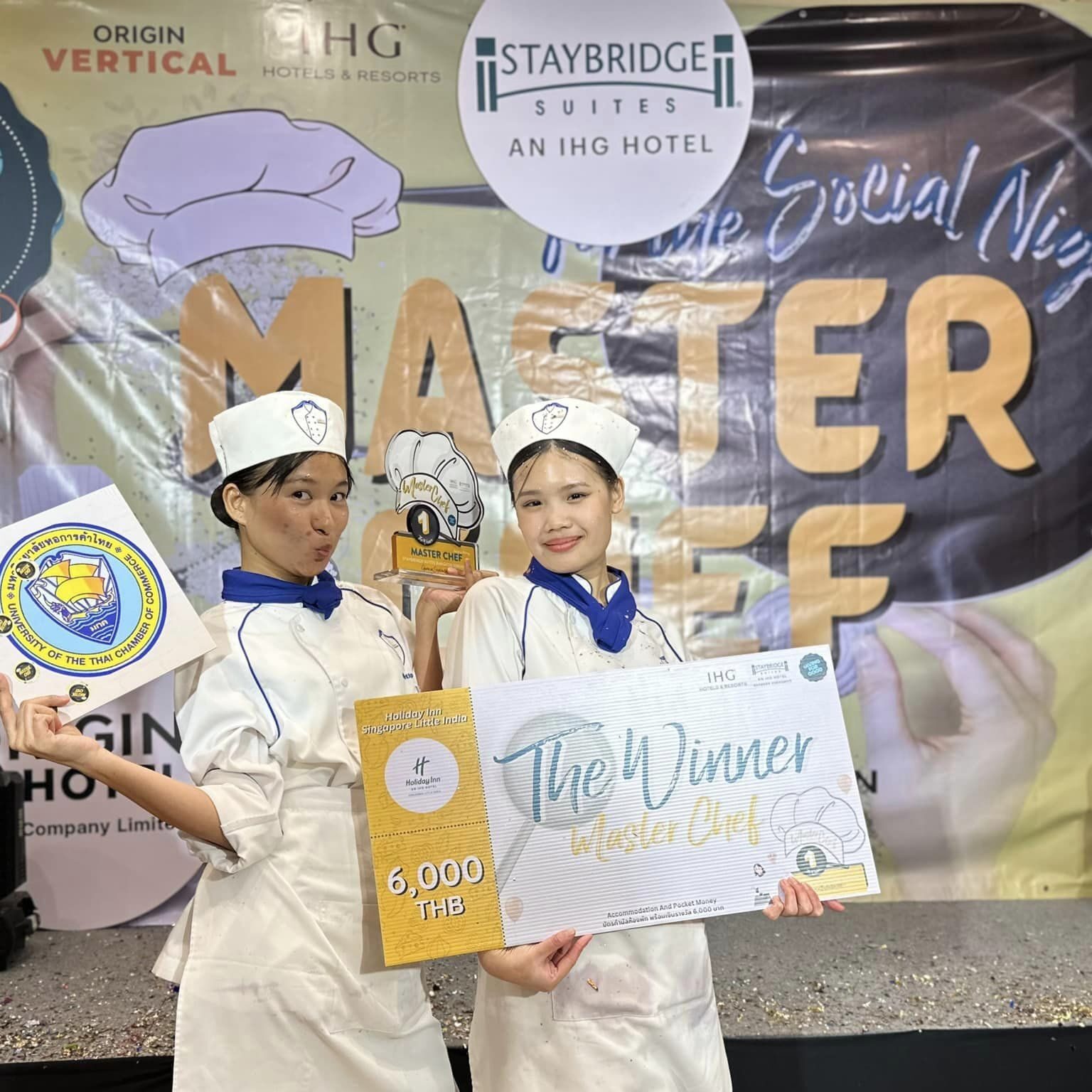 ขอแสดงความยินดีกับนางสาวนลินทิพย์ เติมศักดิ์ และนางสาวกัญญาณัฐ นามเดช นักศึกษาชั้นปีที่ 4 สาขาวิชาศิลปะการประกอบอาหารและการจัดการภัตตาคาร คณะการท่องเที่ยวและอุตสาหกรรมบริการ มหาวิทยาลัยหอการค้าไทย ที่คว้ารางวัลชนะเลิศ การแข่งขันทำอาหาร โครงการประกวด Room to Belong – MasterChef for The Social Night เป็นหนึ่งในโครงการ IHG Giving for Good ประจำปี 2567 ซึ่งมีเป้าหมายเพื่อส่งเสริมพัฒนาให้นักศึกษาได้มีส่วนร่วมกับองค์กรภาคเอกชน ในการออกแบบเมนูอาหาร เพื่อทดแทนการจ้างหรือลดต้นทุนด้านค่าใช้จ่ายของการสั่งซื้ออาหารจากร้านค้าภายนอก จัดขึ้น ณ โรงแรมสเตย์บริดจ์ สวีท กรุงเทพ สุขุมวิท ภายใต้การควบคุมดูแลของอาจารย์ลิขิต แสนบุญครอง พร้อมทั้งอาจารย์และครูปฏิบัติการในสาขาฯ