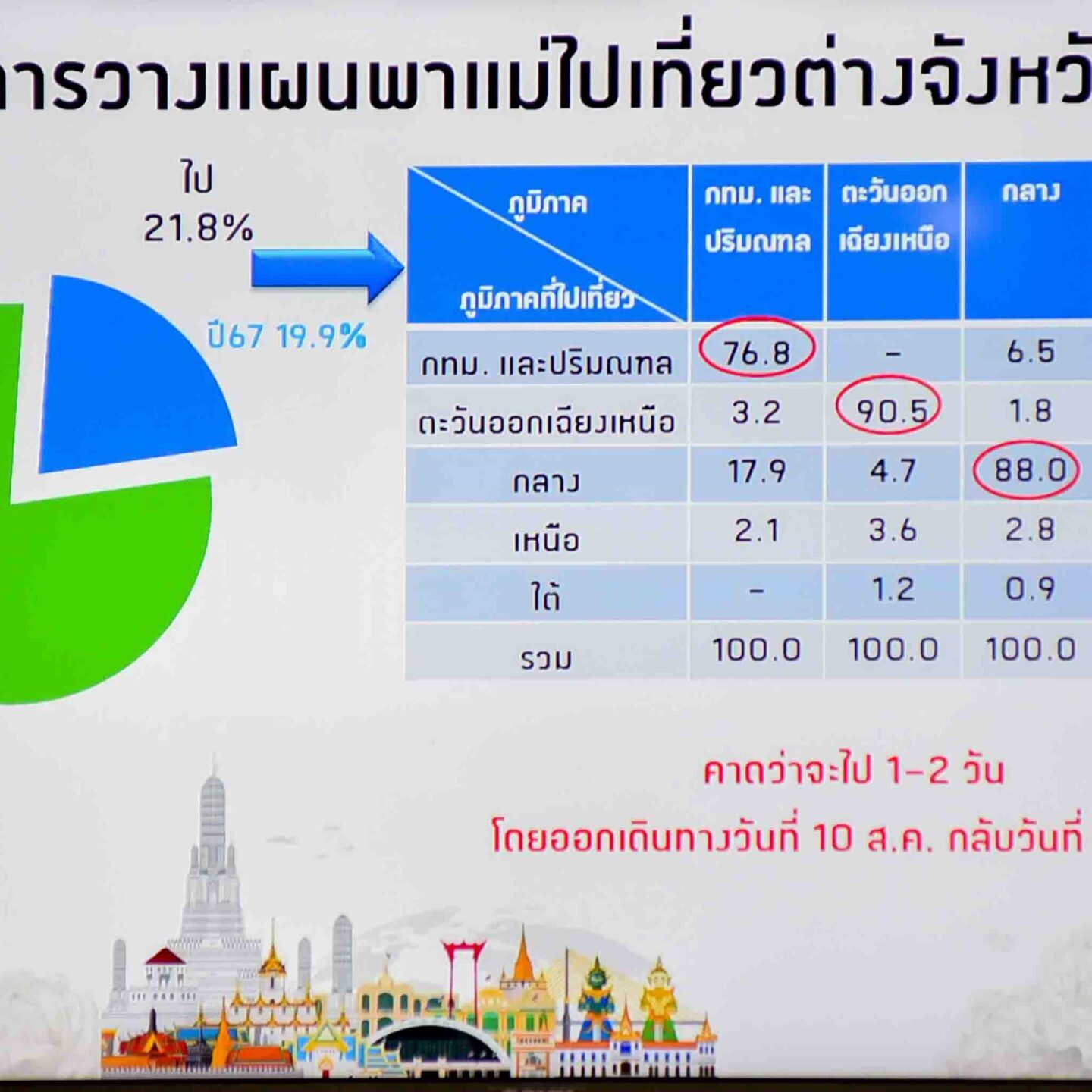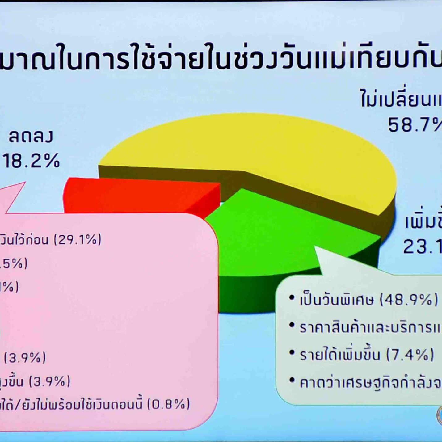 แม้ 84.4% มองเศรษฐกิจไทยแย่ลงและ 74.6% มีสถานะการเงินส่วนตัวไม่ดีขึ้น แต่ประชาชนยังคงให้ความสำคัญกับวันแม่ คาดว่าจะเกิดมูลค่าเงินสะพัด 11,062 ล้านบาท ขยายตัว 1.9% จากปีก่อน สำหรับโครงการ “เที่ยวไทยคนละครึ่ง” 72% ของผู้ลงทะเบียนใช้สิทธิ์ในช่วงวันแม่ และ 96.2% เห็นว่าช่วยลดค่าใช้จ่ายได้อย่างมีนัยสำคัญ