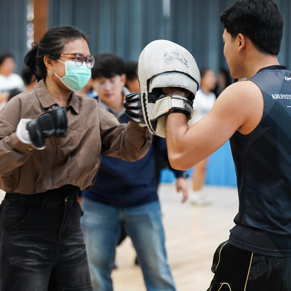 ภายใมนงานได้รับเกียรติจาก อาจารย์ ดร.มานะ ตรีระยาภิวัฒน์ รองอธิการบดีฝ่ายกิจการนักศึกษา เป็นประธานเปิดกิจกรรม โดยมี ครูปาตี สุวรรณสมศรี จาก “ครูปาตีมวยไทยยิม” และทีมงานมาให้ความรู้และฝึกทักษะมวยไทยให้แก่น้องๆ นักศึกษามที่เข้าร่วมในกิจกรรม ณ หอประชุมมหาวิทยาลัยหอการค้าไทย เมื่อวันที่ 11 กุมภาพันธ์ 2569