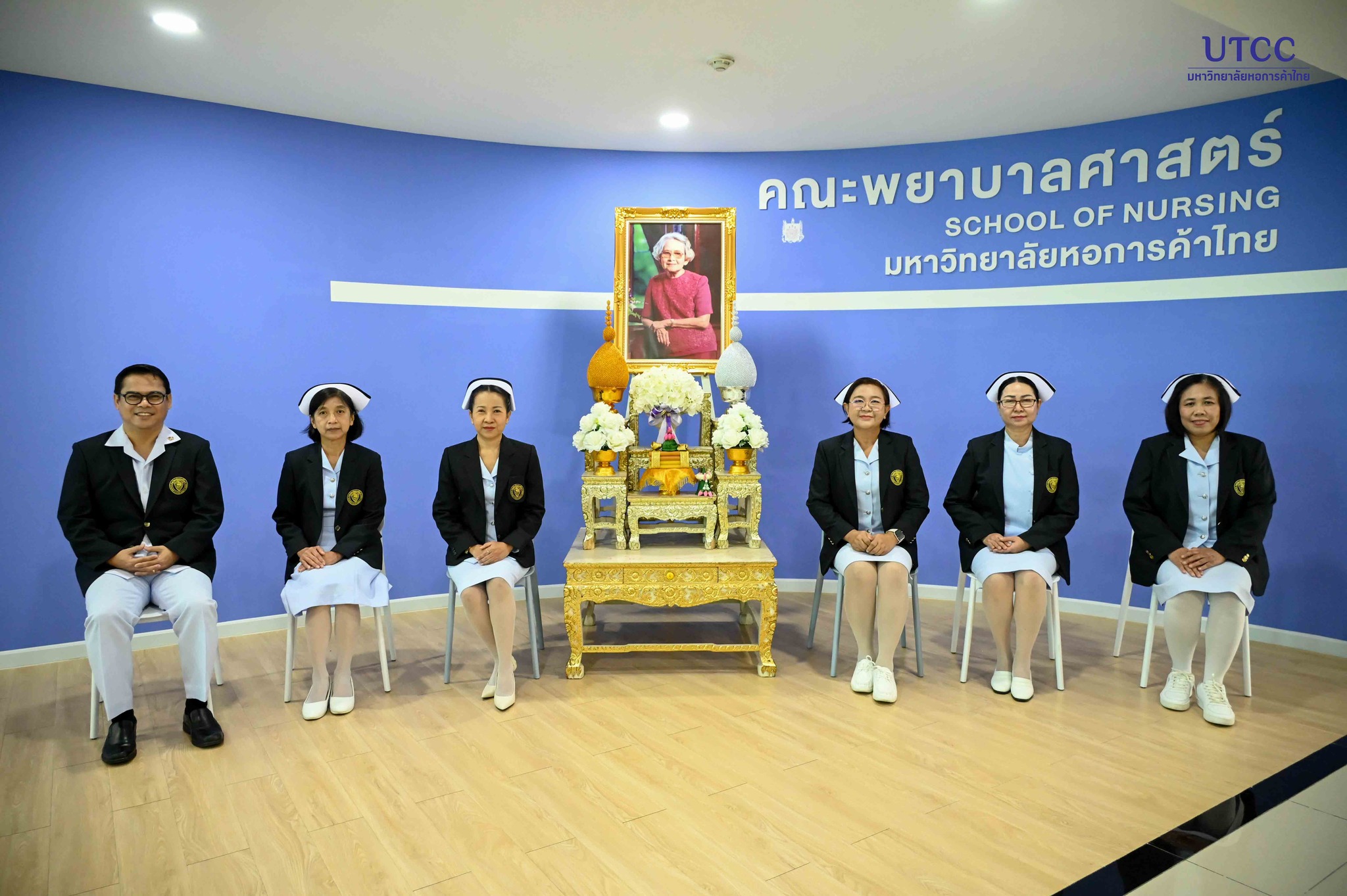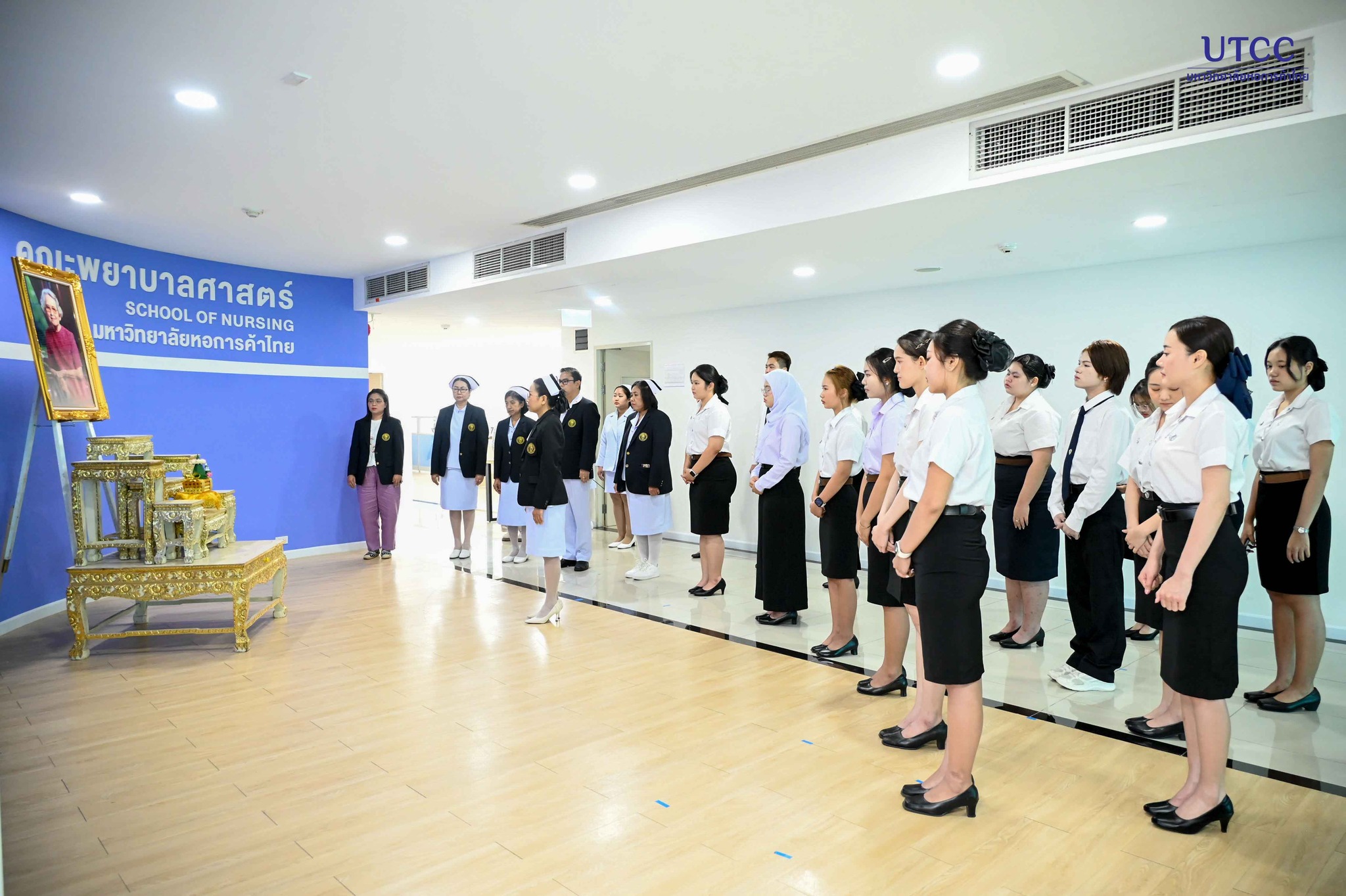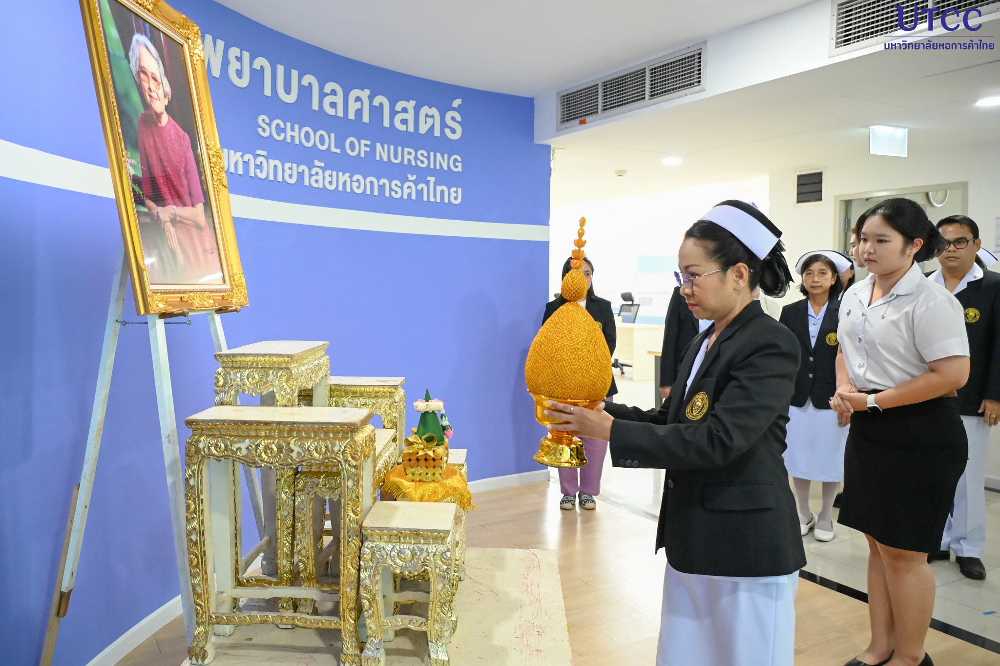 ผู้ช่วยศาสตราจารย์ ดร.ศิปภา ภุมมารักษ์ รักษาการคณบดีคณะพยาบาลศาสตร์ มหาวิทยาลัยหอการค้าไทย นำคณะผู้บริหาร คณาจารย์ เจ้าหน้าที่ และนักศึกษาคณะพยาบาลศาสตร์ จัดพิธีอาศิรวาท ถวายพานพุ่ม เนื่องในโอกาส “วันพยาบาลแห่งชาติ” เพื่อเป็นการเฉลิมพระเกียรติและเผยแพร่พระเกียรติคุณของสมเด็จพระศรีนครินทราบรมราชชนนี โดยกิจกรรมภายในงานให้นักศึกษาได้ชมวิดิทัศน์พระราชกรณียกิจสมเด็จพระศรีนครินทราบรมราชชนนี ร่วมร้องเพลงมาร์ชพยาบาล และการบรรยายจาก อาจารย์สุวรรณา วุฒิรณฤทธิ์ รองคณบดีฝ่ายกิจการนักศึกษา คณะพยาบาลศาสตร์ มหาวิทยาลัยหอการค้าไทย เพื่อให้นักศึกษาได้เล็งเห็นถึงความสำคัญและน้อมสำนึกในพระมหากรุณาธิคุณ “สมเด็จพระศรีนครินทราบรมราชชนนี” ต้นแบบแห่งวิชาชีพพยาบาลไทย พร้อมเชิดชูหัวใจพยาบาลผู้ที่เสียสละ ดูแลชีวิตผู้อื่นด้วยความรักความเมตตา อีกด้วย ณ ห้องโถงคณะพยาบาลศาสตร์ อาคาร 23 ชั้น 5 มหาวิทยาลัยหอการค้าไทย เมื่อวันที่ 20 ตุลาคม 2568