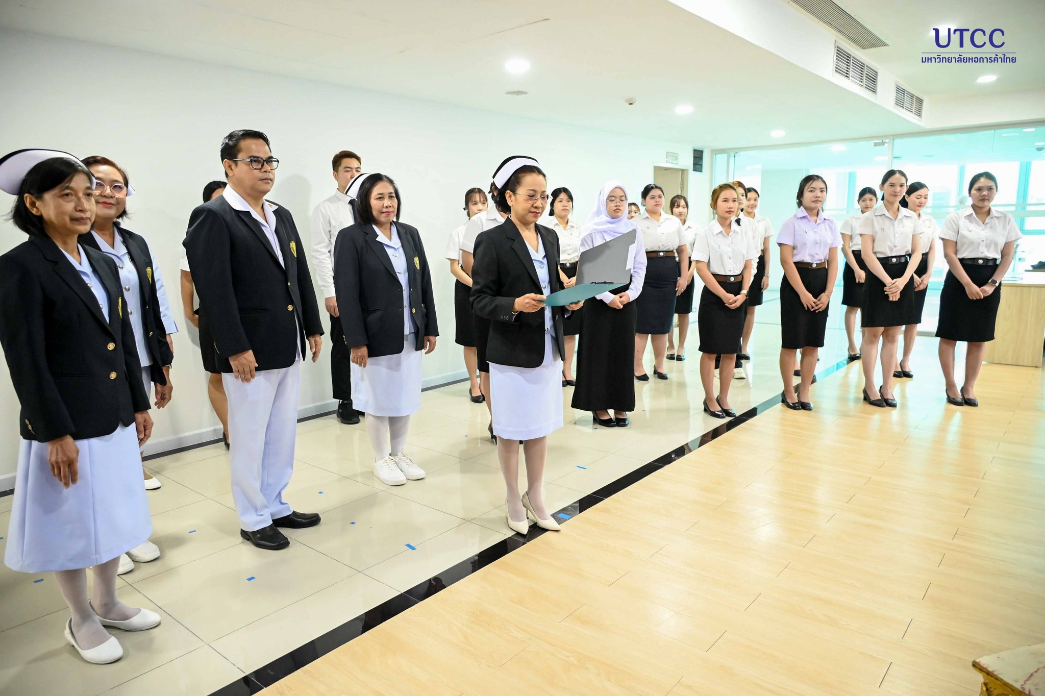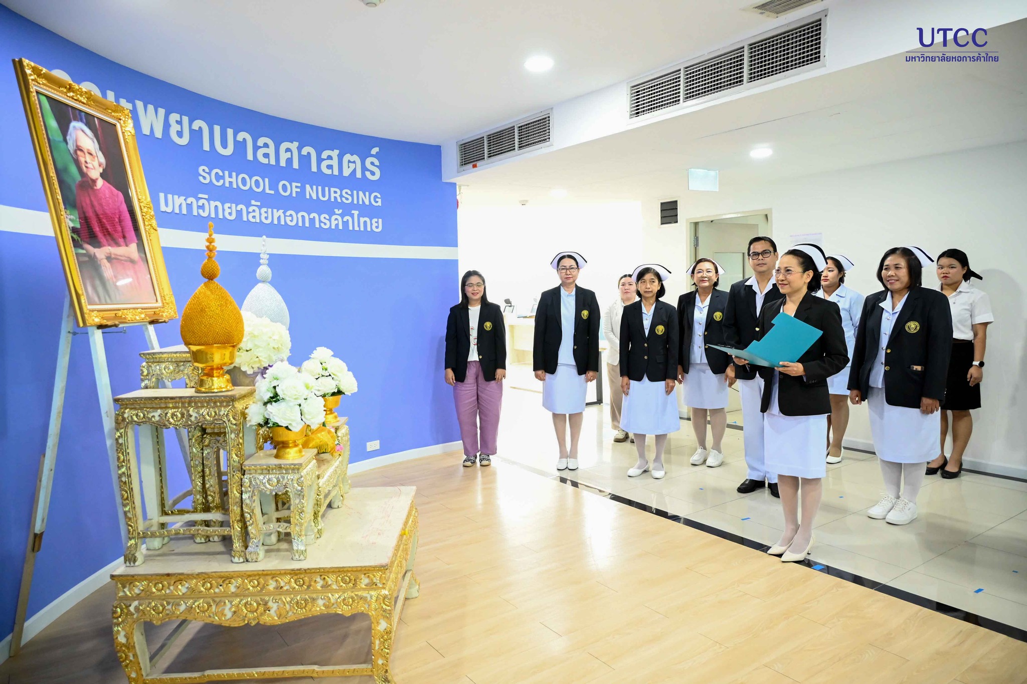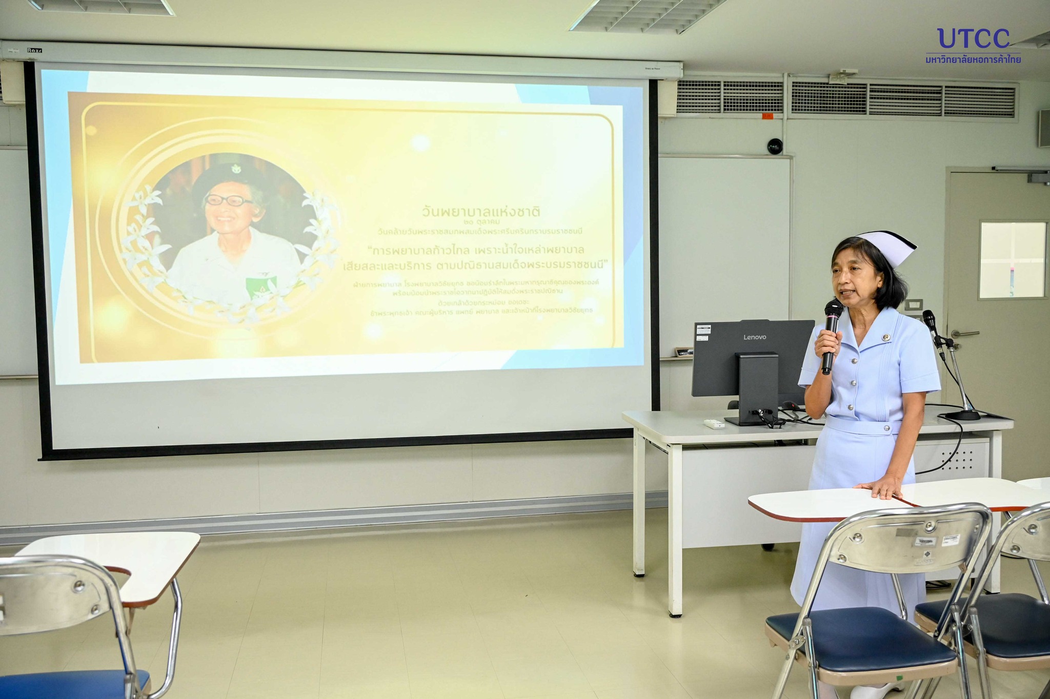 ผู้ช่วยศาสตราจารย์ ดร.ศิปภา ภุมมารักษ์ รักษาการคณบดีคณะพยาบาลศาสตร์ มหาวิทยาลัยหอการค้าไทย นำคณะผู้บริหาร คณาจารย์ เจ้าหน้าที่ และนักศึกษาคณะพยาบาลศาสตร์ จัดพิธีอาศิรวาท ถวายพานพุ่ม เนื่องในโอกาส “วันพยาบาลแห่งชาติ” เพื่อเป็นการเฉลิมพระเกียรติและเผยแพร่พระเกียรติคุณของสมเด็จพระศรีนครินทราบรมราชชนนี โดยกิจกรรมภายในงานให้นักศึกษาได้ชมวิดิทัศน์พระราชกรณียกิจสมเด็จพระศรีนครินทราบรมราชชนนี ร่วมร้องเพลงมาร์ชพยาบาล และการบรรยายจาก อาจารย์สุวรรณา วุฒิรณฤทธิ์ รองคณบดีฝ่ายกิจการนักศึกษา คณะพยาบาลศาสตร์ มหาวิทยาลัยหอการค้าไทย เพื่อให้นักศึกษาได้เล็งเห็นถึงความสำคัญและน้อมสำนึกในพระมหากรุณาธิคุณ “สมเด็จพระศรีนครินทราบรมราชชนนี” ต้นแบบแห่งวิชาชีพพยาบาลไทย พร้อมเชิดชูหัวใจพยาบาลผู้ที่เสียสละ ดูแลชีวิตผู้อื่นด้วยความรักความเมตตา อีกด้วย ณ ห้องโถงคณะพยาบาลศาสตร์ อาคาร 23 ชั้น 5 มหาวิทยาลัยหอการค้าไทย เมื่อวันที่ 20 ตุลาคม 2568