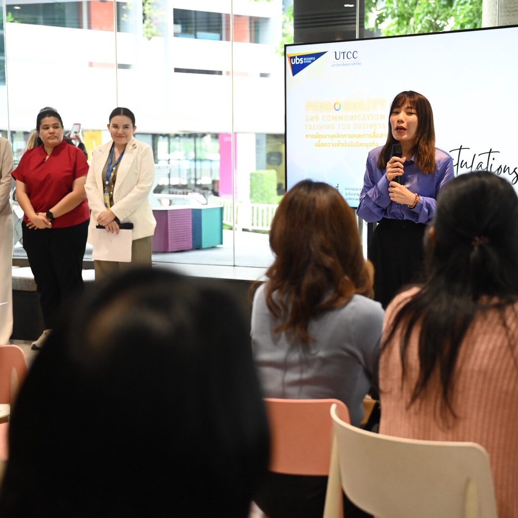 คณะบริหารธุรกิจ ขอขอบคุณผู้เรียนทุกท่านที่มาร่วมเสริมเสน่ห์และเพิ่มความมั่นใจใน “Personality and Communication Training for Business” จัดโดยคณะบริหารธุรกิจ มหาวิทยาลัยหอการค้าไทย เมื่อวันที่ 17 พฤษภาคม 2568 เวลา 09:00 – 16:00 น. ณ มหาวิทยาลัยหอการค้าไทย