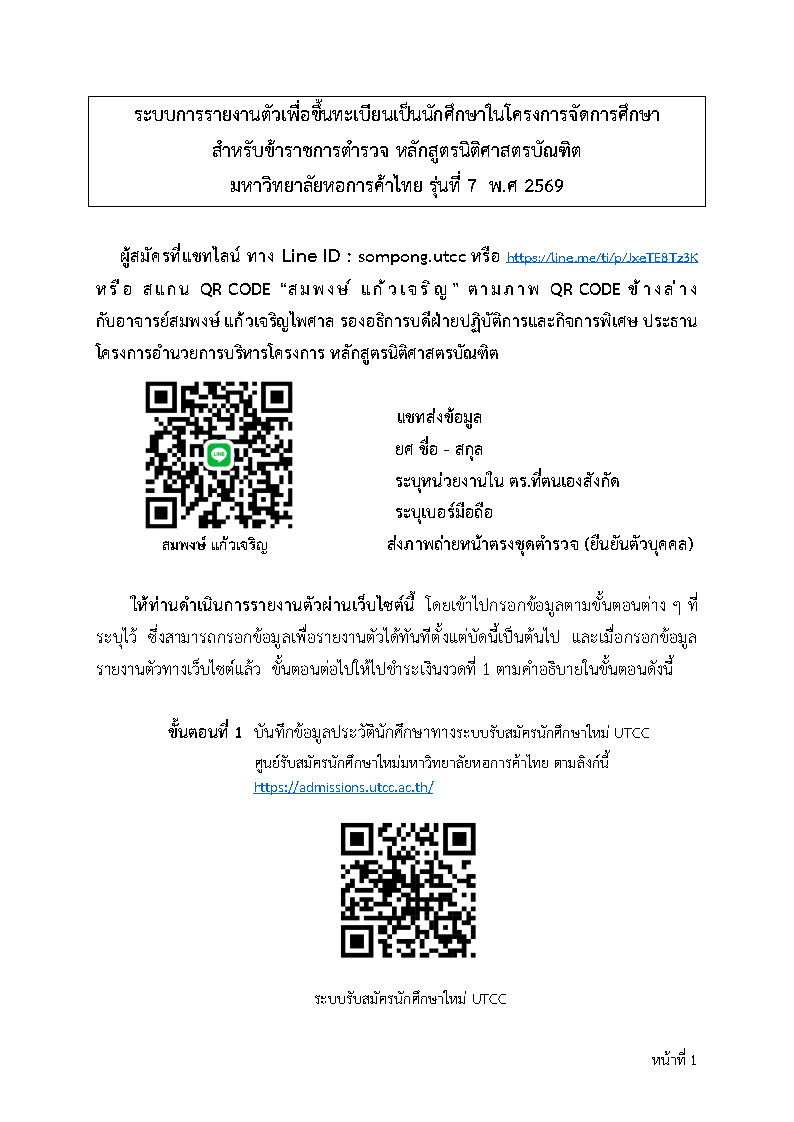 #UTCC #มหาวิทยาลัยหอการค้าไทย #เด็กหัวการค้า #โครงการการศึกษาสำหรับข้าราชการตำรวจ #หลักสูตรนิติศาสตร์บัณฑิต