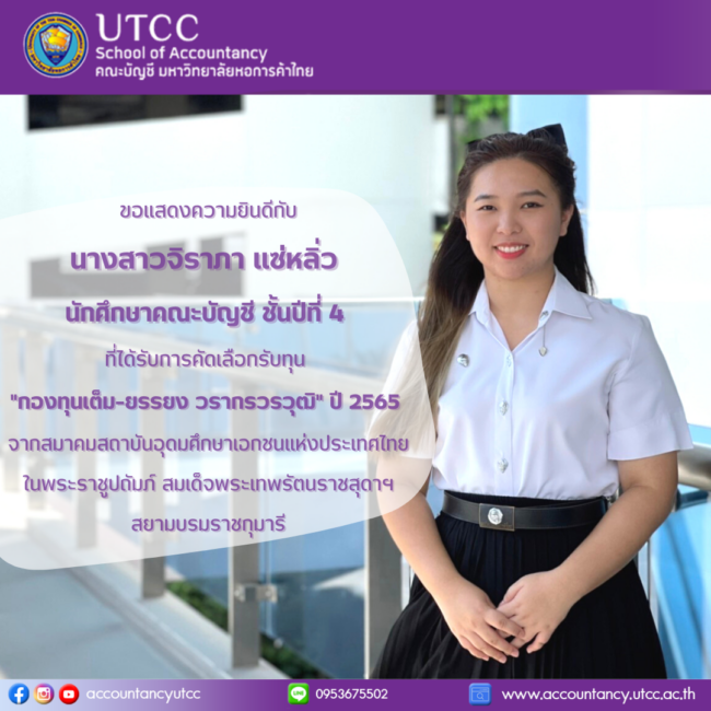 มหาวิทยาลัยหอการค้าไทย ขอแสดงความยินดีกับนางสาวจิราภา แ…
