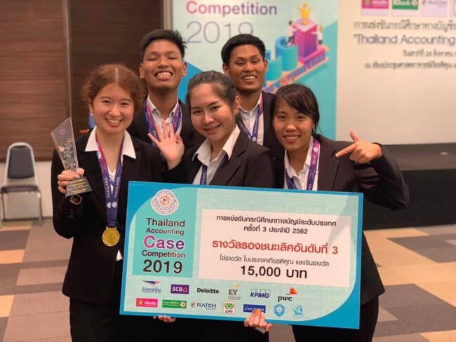 ขอแสดงความยินดีกับตัวแทนนักศึกษาคณะบัญชี ที่ได้รับรางวัลจากการแข่งขันการแข่งขันกรณีศึกษาทางบัญชีระดับประเทศครั้งที่ 3 ประจำปี 2562