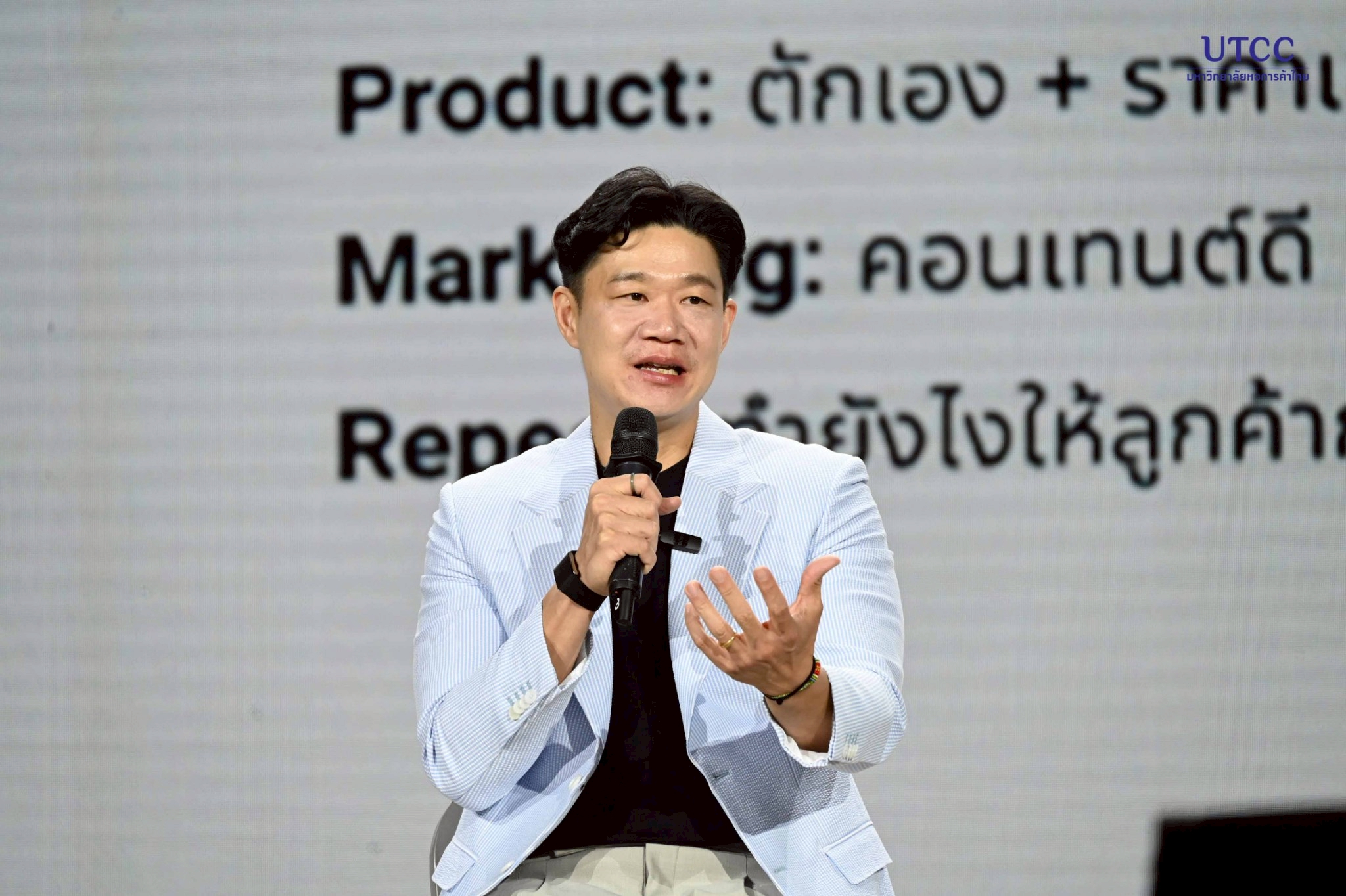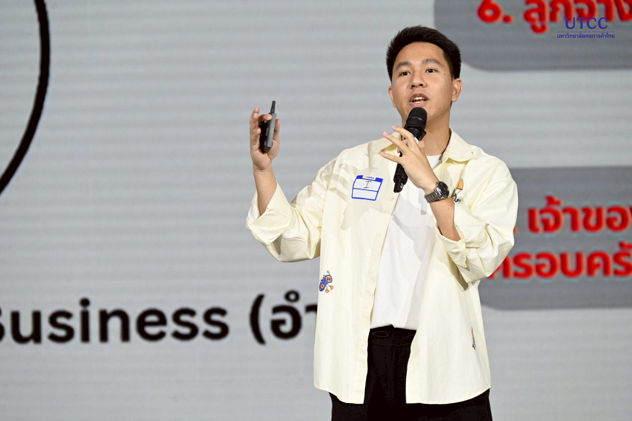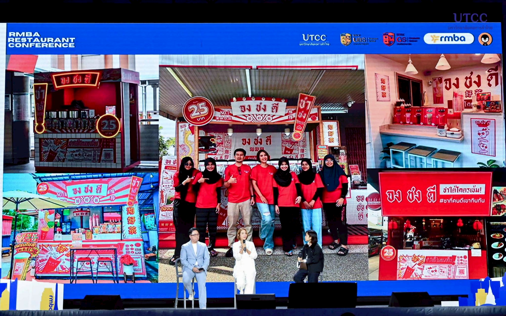 รองศาสตราจารย์ ดร.ธนวรรธน์ พลวิชัย อธิการบดีมหาวิทยาลัยหอการค้าไทย และผู้อำนวยการหลักสูตร RMBA คุณธนพงศ์ วงศ์ชินศรี (ผู้อำนวยการหลักสูตรร่วม RMBA) เจ้าของเพจ Torpenguin กล่าวเปิดงานโครงการ RMBA Forum and Conference ปีการศึกษา 2568 หัวข้อ “RMBA RESTAURANT CONFERENCE 2026 : สัมมนาร้านอาหารสำหรับคนตัวเล็ก” จัดโดยหลักสูตรบริหารธุรกิจมหาบัณฑิต กลุ่มวิชาการจัดการธุรกิจร้านอาหาร (RMBA) บัณฑิตวิทยาลัย มหาวิทยาลัยหอการค้าไทย เพื่อเป็นเวทีแลกเปลี่ยนองค์ความรู้ ประสบการณ์ และมุมมองจากวิทยากรผู้ทรงคุณวุฒิ และผู้ที่ประสบความสำเร็จในธุรกิจร้านอาหาร รวมถึงเสริมสร้างศักยภาพและแนวคิดใหม่ๆ ให้กับ นักศึกษา และผู้ประกอบการร้านอาหารรายย่อย (คนตัวเล็ก) สามารถนำความรู้ไปประยุกต์ใช้ได้จริงในอนาคต
