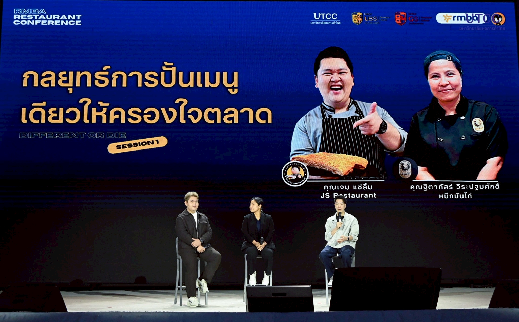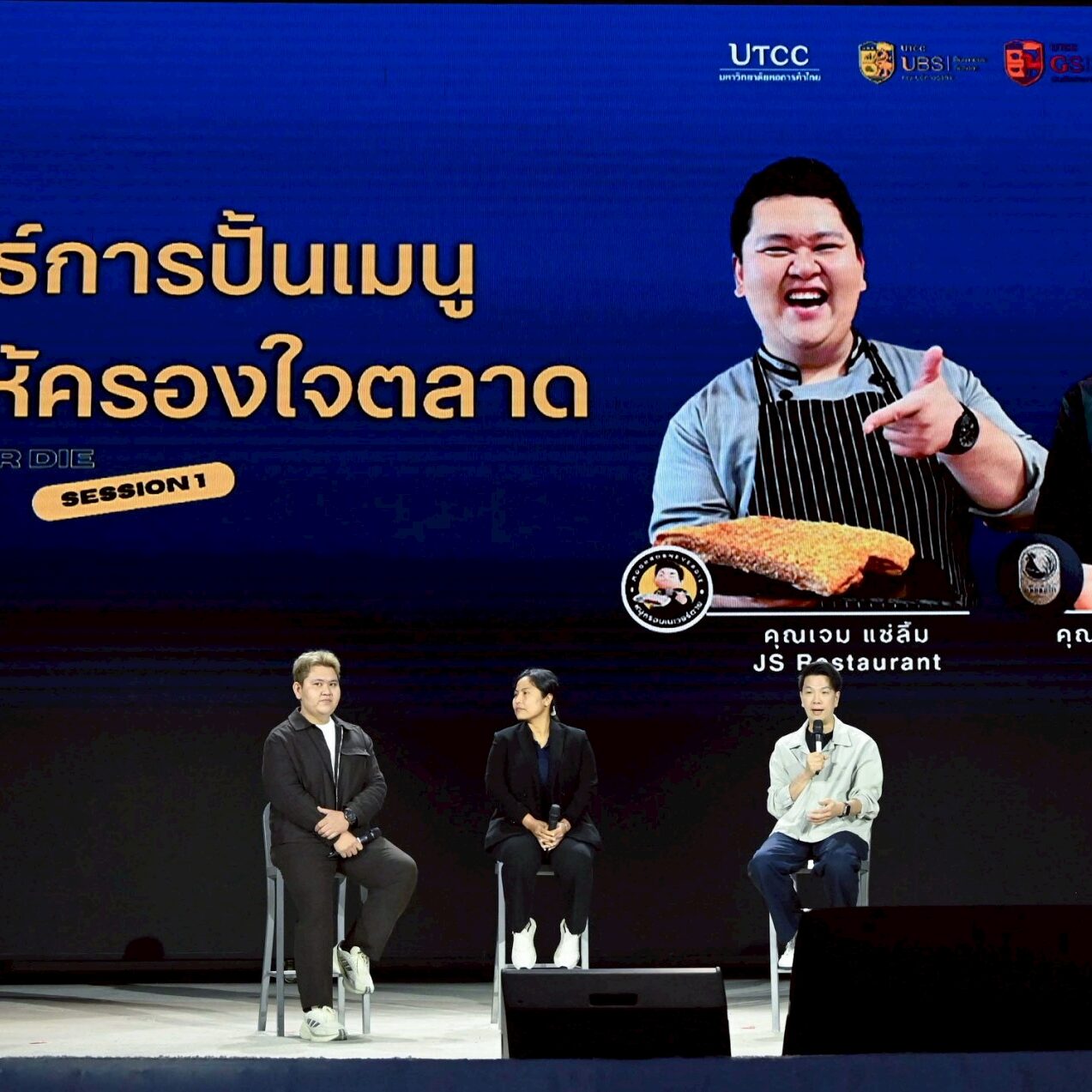 Session 1: กลยุทธ์การปั้นเมนูเดียวให้ครองใจตลาด โดย คุณเจม แซ่ลิ้ม เจ้าของร้าน JS Restaurant และ คุณหมึก ฐิตาภัสร์ วีระปฐมศักดิ์ เจ้าของร้าน หมึกมันไก่