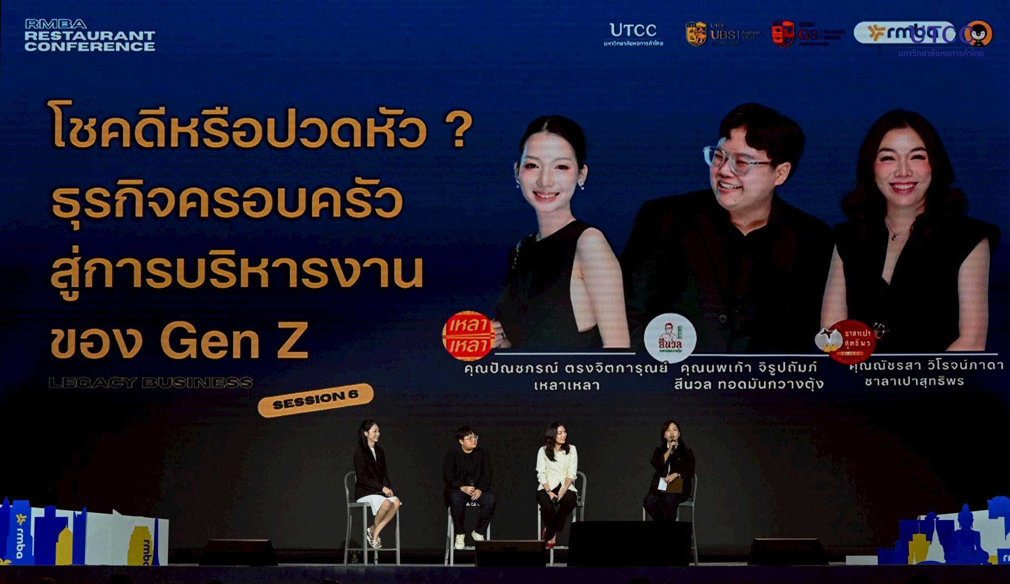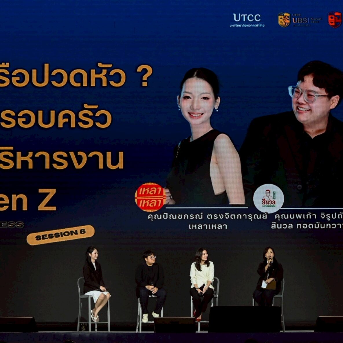 Session 6: โชคดีหรือปวดหัว? ธุรกิจครอบครัวสู่การบริหารงานของ Gen Z โดยคุณโปรด ปัณชภรณ์ ตรงจิตการุณย์เจ้าของร้าน เหลาเหลา และ คุณหมิว นพเก้า จิรูปถัมภ์ เจ้าของร้าน สีนวล ทอดมันกวางตุ้ง และ คุณลี่ ณัชรสา วิโรจน์ภาดา เจ้าของร้าน ซาลาเปาสุทธิพร