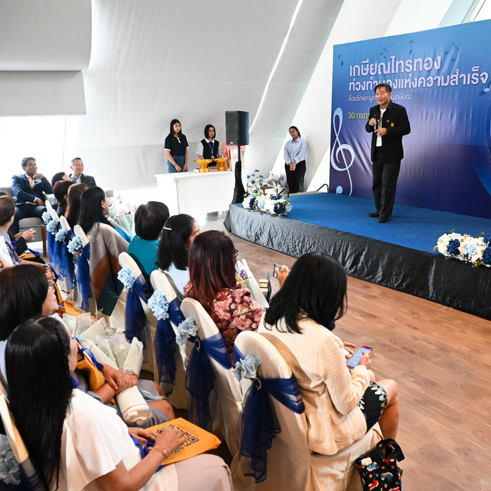 มหาวิทยาลัยหอการค้าไทย จัดงาน ด้วยรักและผูกพัน…วันเกษียณ ภายใต้ชื่อ “เกษียณไทรทอง…ท่วงทำนองแห่งความสำเร็จ” ให้แก่ผู้เกษียณอายุ ประจำปีการศึกษา 2567 ซึ่งมีผู้เกษียณอายุ รวมทั้งสิ้น 20 ท่าน ภายในงานได้รับเกียรติจาก รองศาสตราจารย์ ดร.ธนวรรธน์ พลวิชัย อธิการบดีมหาวิทยาลัยหอการค้าไทย เป็นประธานในพิธีมอบของที่ระลึก กล่าวขอบคุณ และอวยพรแก่พี่ๆ ผู้เกษียณอายุที่มาร่วมงาน เพื่อเป็นการขอบคุณพี่ๆ ผู้เกษียณอายุ ที่ได้สร้างสมคุณงามความดี และสร้างคุณประโยชน์ให้แก่มหาวิทยาลัยฯ มาตลอดอายุการทำงาน นอกจากนี้ภายในงานยังได้รับเกียรติจาก ผู้ช่วยศาสตราจารย์ ธนวรรษ์ เสริมพาณิชย์ ประธานชมรมร่มไทรทองร่วมมอบของที่ระลึกให้แก่ผู้เกษียณอีกด้วย ซี่งภายในงานมีน้องๆ จากหน่วยงานต่างๆ เข้าร่วมแสดงมุทิตาจิต โดยบรรยากาศเป็นไปอย่างอบอุ่นแบบพี่ๆ น้องๆ ชาวแม่ไทร ณ โถงอเนกประสงค์ อาคารสัญลักษณ์ (อาคาร 24) ชั้น 18 มหาวิทยาลัยหอการค้าไทย เมื่อวันที่ 30 กรกฎาคม 2568