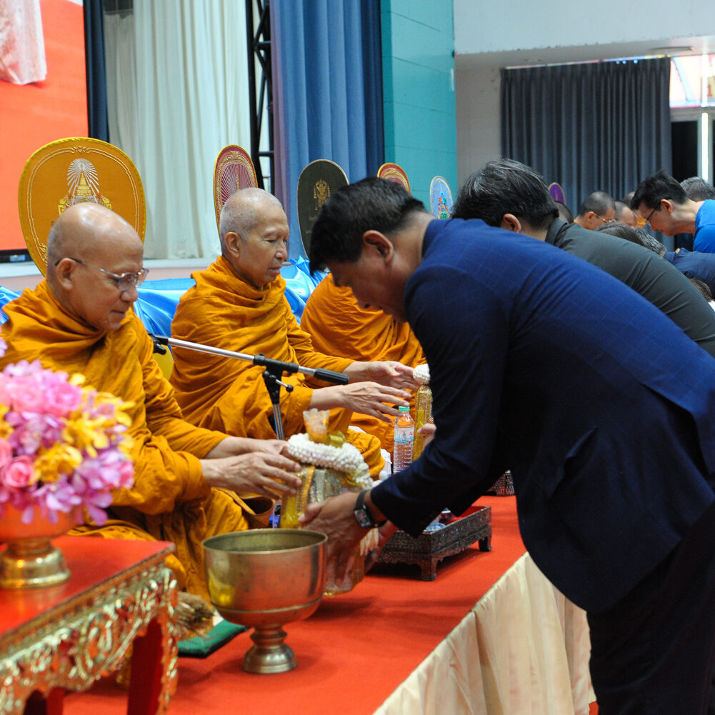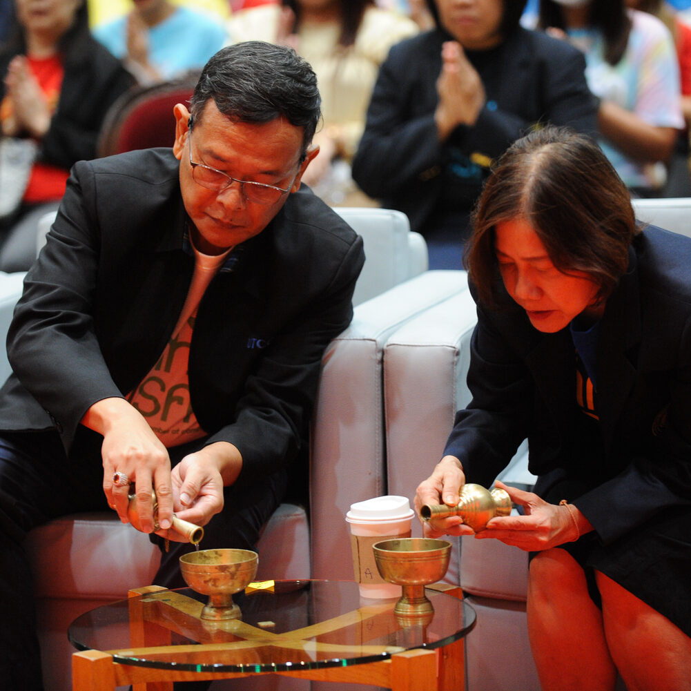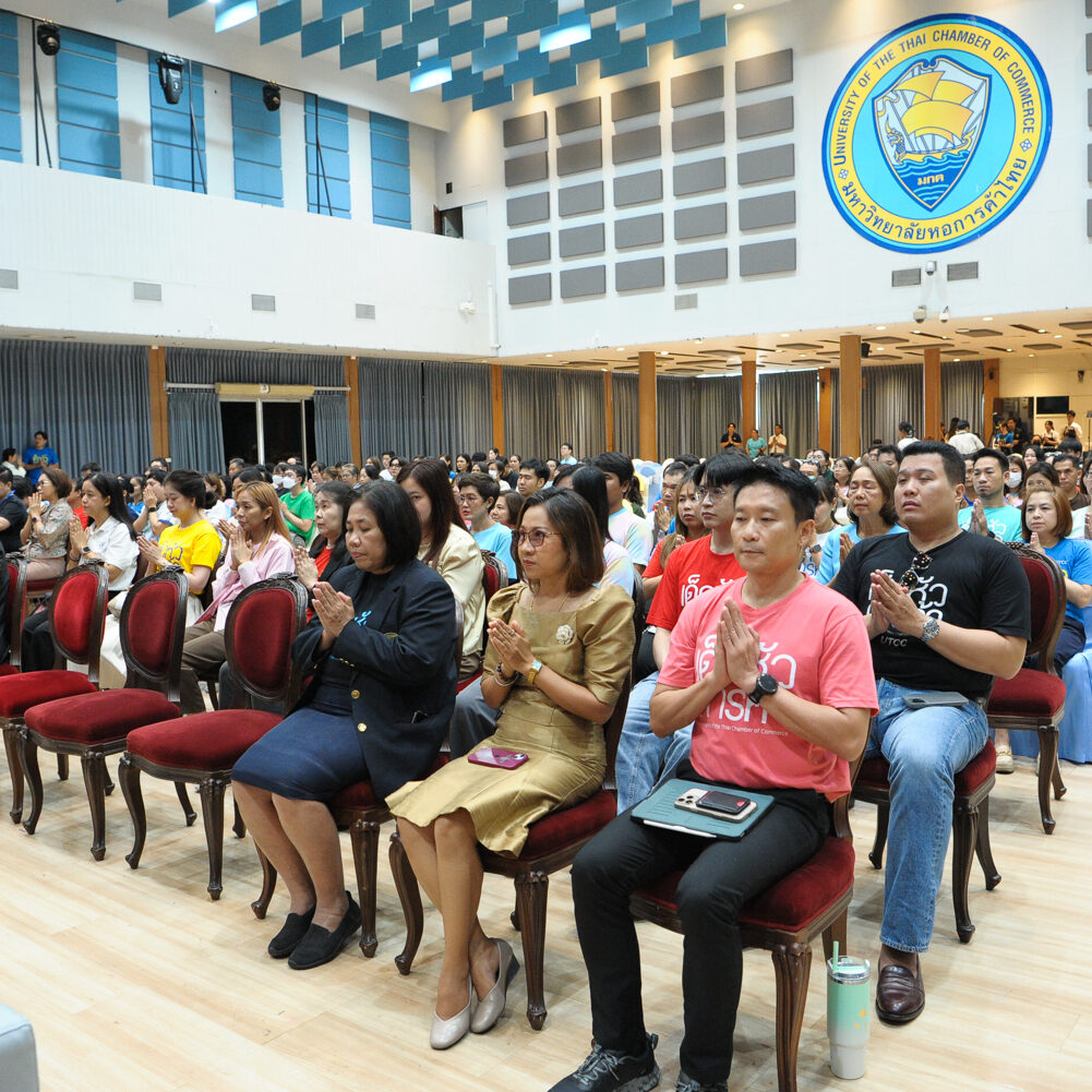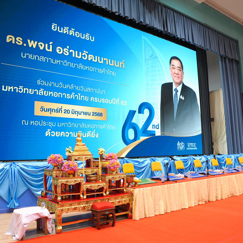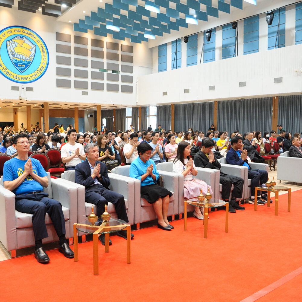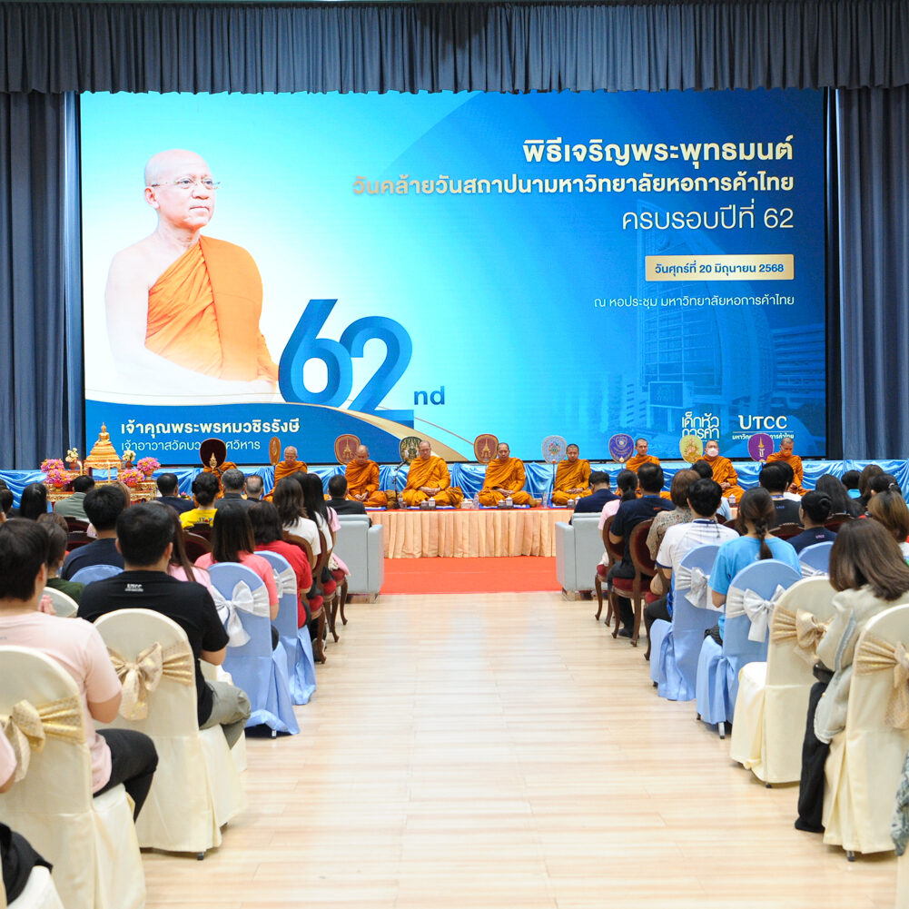 ดร.พจน์ อร่ามวัฒนานนท์ นายกสภามหาวิทยาลัยหอการค้าไทย ให้เกียรติมาเป็นประธานในพิธีเจริญพระพุทธมนต์และสักการะสิ่งศักดิ์สิทธิ์ประจำมหาวิทยาลัยหอการค้าไทย ในโอกาสวันคล้ายวันสถาปนาครบรอบ 62 ปี มหาวิทยาลัยหอการค้าไทย ซึ่งในปีนี้ทางมหาวิทยาลัยฯ ได้รับเมตตาจากเจ้าคุณพระพรหมวชิรรังษี เจ้าอาวาสวัดบวรนิเวศวิหาร และคณะสงฆ์ มาร่วมประกอบพิธีเจริญพระพุทธมนต์ โดยมี กรรมการสภามหาวิทยาลัย คณะผู้บริหาร อาจารย์ เจ้าหน้าที่ และผู้แทนนักศึกษา เข้าร่วมในพิธี ณ หอประชุมมหาวิทยาลัยหอการค้าไทย เมื่อวันที่ 20 มิถุนายน 2568