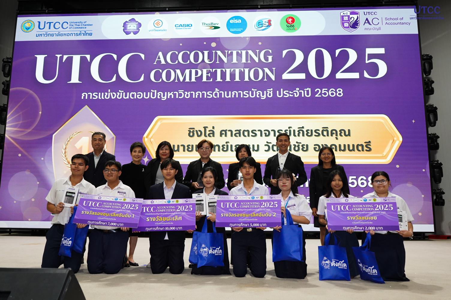 คณะบัญชี มหาวิทยาลัยหอการค้าไทย จัดการเข้าร่วมแข่งขันตอบปัญหาวิชาการด้านการบัญชี “UTCC Accounting Competition 2025” ในระดับประกาศนียบัตรวิชาชีพ (ปวช.) และประกาศนียบัตรวิชาชีพชั้นสูง (ปวส.) เพื่อชิงโล่ศาสตราจารย์เกียรติคุณ นายแพทย์เกษม วัฒนชัย องคมนตรี และทุนการศึกษา โดยได้รับการสนับสนุนจากบริษัท คาสิโอ มาร์เก็ตติ้ง (ประเทศไทย) จำกัด มูลนิธิไทยเครดิต และบริษัท ไทยเบฟเวอเรจ จำกัด (มหาชน) เพื่อเป็นการประชาสัมพันธ์คณะวิชาให้กับน้องๆ นักเรียนจากทั่วประเทศ