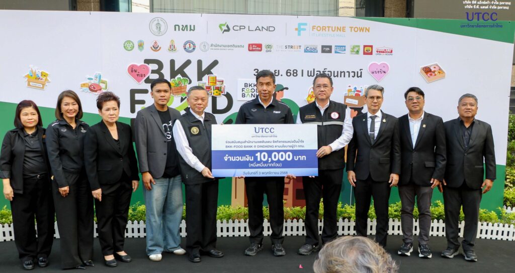 เมื่อวันจันทร์ที่ 3 พฤศจิกายน 2568 ที่ผ่านมา มหาวิทยาลัยหอการค้าไทย (UTCC) โดย อาจารย์สมพงษ์ แก้วเจริญไพศาล รองอธิการบดีฝ่ายปฏิบัติการและกิจการพิเศษ เป็นผู้แทน รองศาสตราจารย์ ดร.ธนวรรธน์ พลวิชัย อธิการบดีมหาวิทยาลัยหอการค้าไทย เข้าร่วมกิจกรรม “BKK FOOD BANK @DINDAENG” ณ ลานฟอร์จูนสตรีท ศูนย์การค้าฟอร์จูนทาวน์ เขตดินแดง