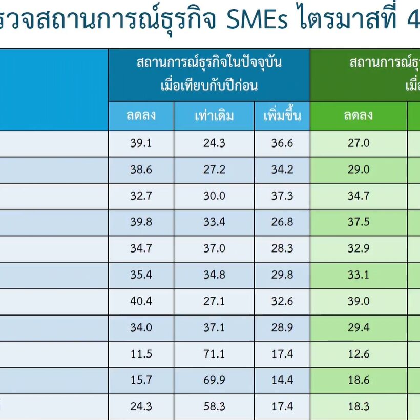 ดังนั้น ในระยะต่อไปควรส่งเสริมการลงทุนด้านเทคโนโลยีและการเพิ่มประสิทธิภาพการผลิตของ SME เพื่อยกระดับขีดความสามารถในการแข่งขัน หาก SME ในทุกภาคส่วนสามารถปรับตัว พัฒนาระบบ และเข้าถึงสินเชื่อได้อย่างเหมาะสม จะเป็นแรงขับเคลื่อนสำคัญที่ช่วยให้เศรษฐกิจไทยฟื้นตัวและเติบโตได้อย่างยั่งยืนในระยะยาว