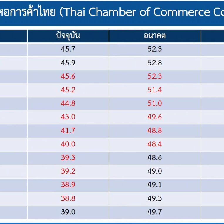 ด้านดัชนีความเชื่อมั่นหอการค้าไทยเดือนมกราคม 2569 อยู่ที่ระดับ 44.4 โดยได้รับแรงสนับสนุนจากเสถียรภาพทางการเมืองภายหลังการยุบสภา การส่งออกที่เพิ่มขึ้น สถานการณ์บริเวณชายแดนไทย–กัมพูชาที่ยุติลงตั้งแต่ปลายปี 2568 รวมถึงมาตรการปรับโครงสร้างหนี้ที่ช่วยบรรเทาปัญหาเศรษฐกิจในปัจจุบัน
