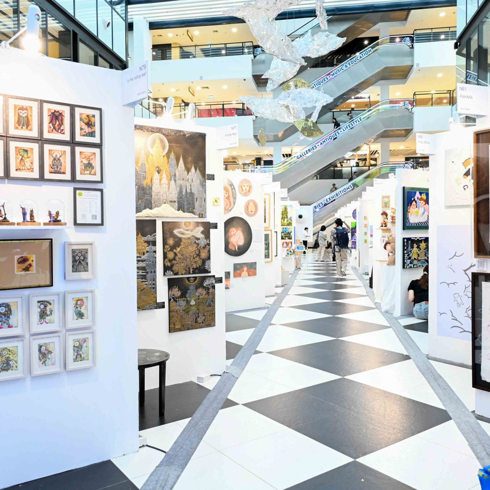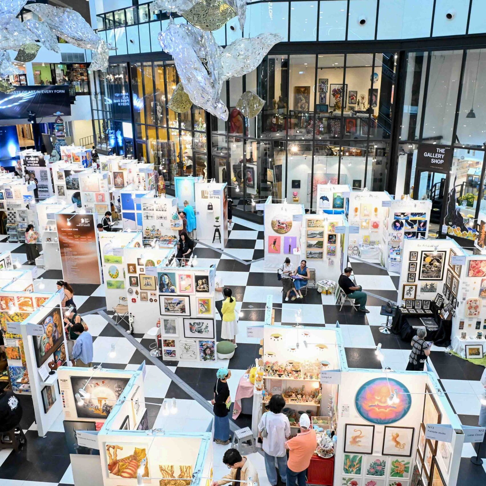 บูธแสดงผลงานศิลปะและงานออกแบบ ที่แบ่งเป็นโซนต่าง ๆ ไม่ว่าจะเป็น โซนรวมแกลเลอรี (ทั้งไทยและต่างประเทศ) โซนศิลปินอิสระ โซนศิลปินรุ่นใหม่ หรือโซนงานคราฟต์