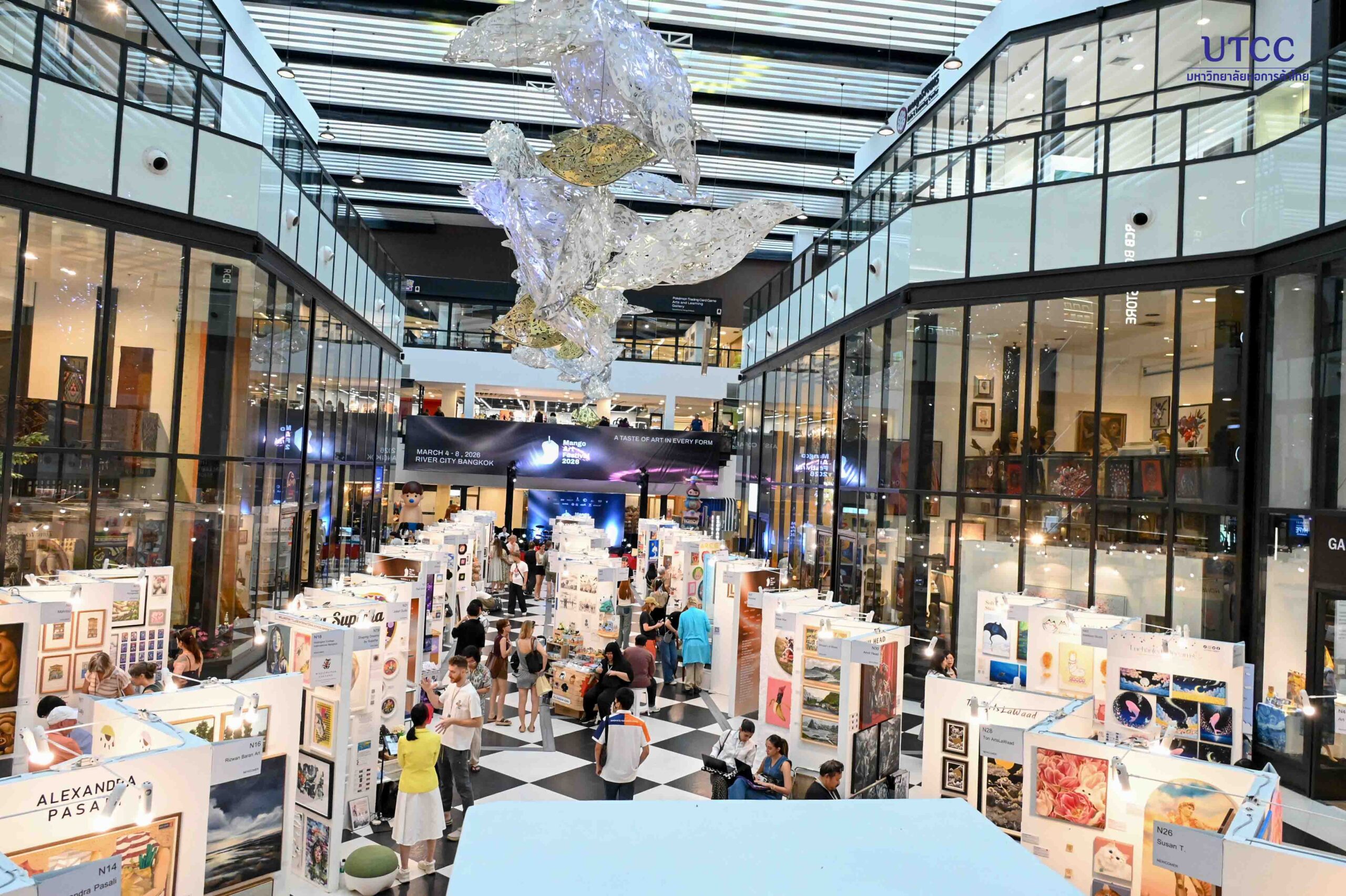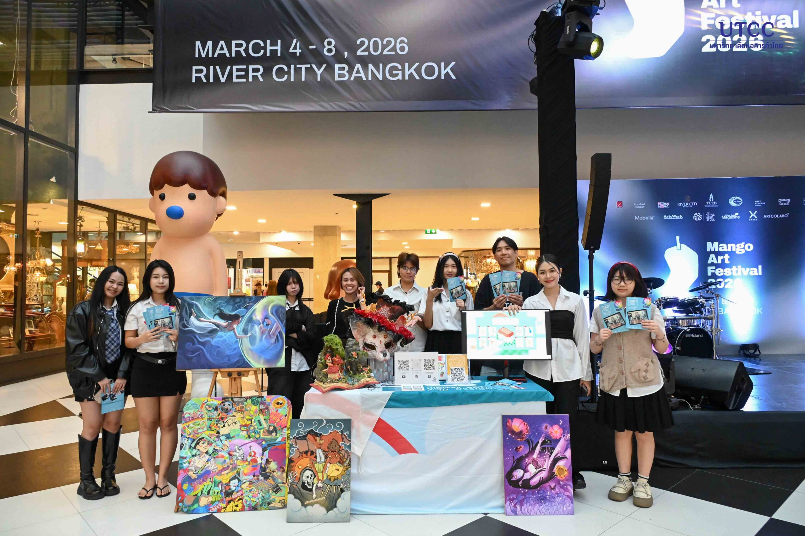 คณะดิจิทัลอาร์ตและดีไซน์ มหาวิทยาลัยหอการค้าไทย ร่วมออกบูธแนะแนวการศึกษา ในเทศกาล Mango Art Festival 2026 (จัดขึ้นระหว่างวันที่ 4-8 มีนาคม 2569) ณ River City Bangkok เพื่อเปิดโอกาสให้นักเรียน นักศึกษา และผู้สนใจด้านศิลปะและการออกแบบ ได้รับข้อมูลเกี่ยวกับหลักสูตร การเรียนการสอน และแนวทางการศึกษาต่อในสายงานสร้างสรรค์