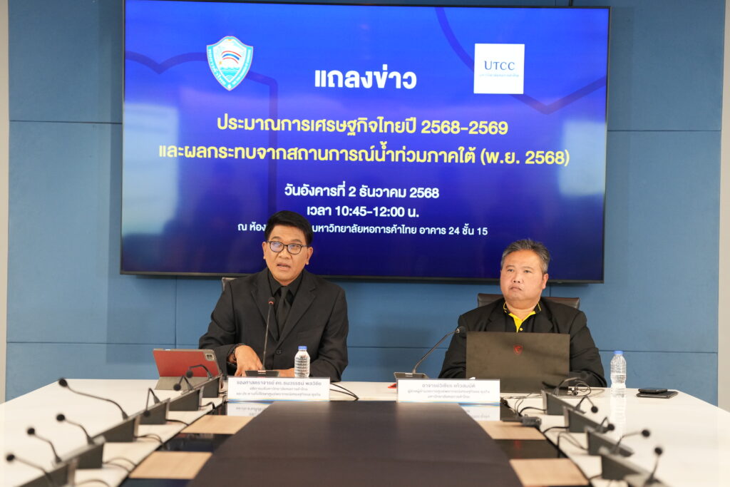 มหาวิทยาลัยหอการค้าไทย แถลงประมาณการเศรษฐกิจไทยปี 2568-2569 พร้อมประเมินผลกระทบจากสถานการณ์น้ำท่วมภาคใต้