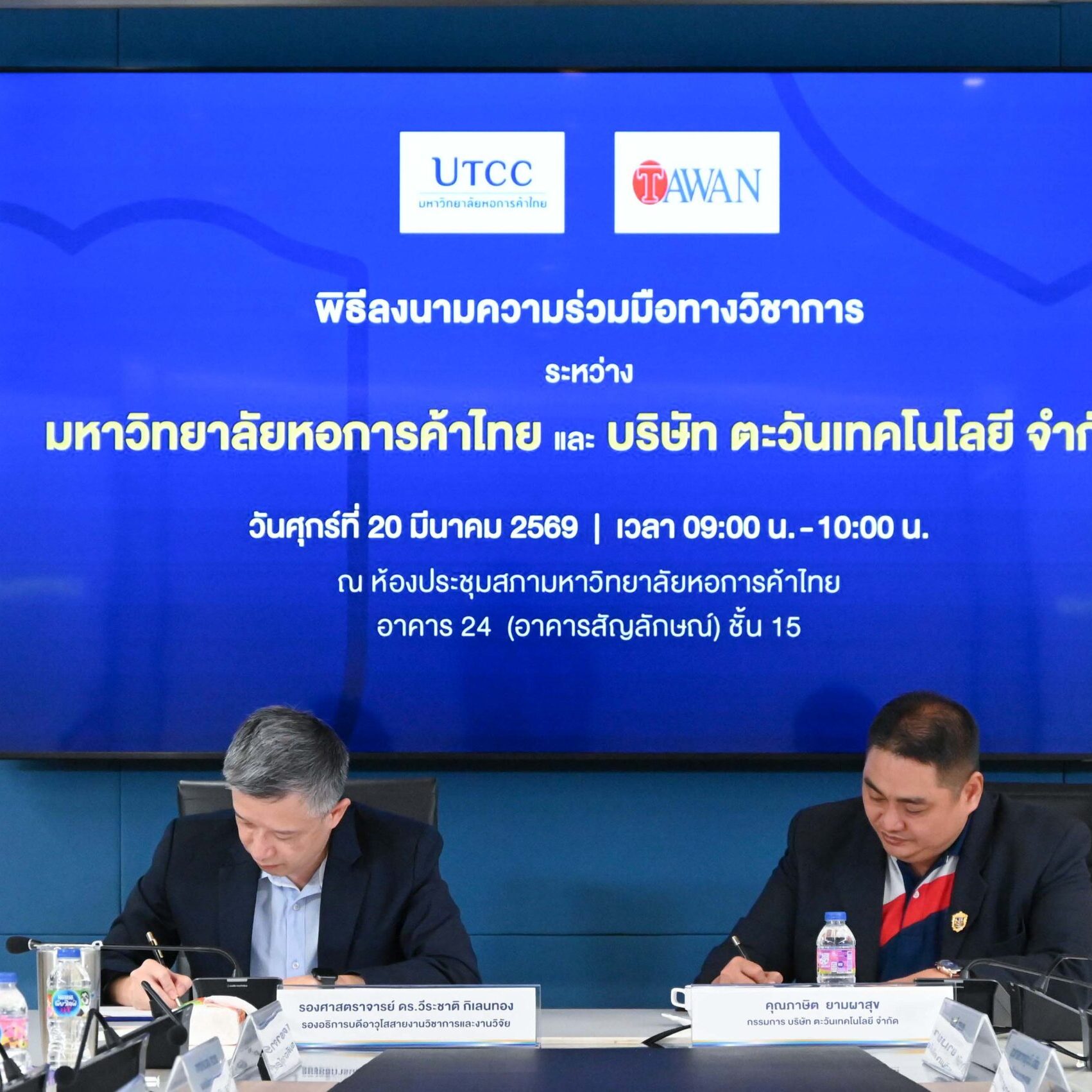 คณะเศรษฐศาสตร์ มหาวิทยาลัยหอการค้าไทย จัดพิธีลงนามความร่วมมือทางวิชาการ (MOU) ระหว่าง มหาวิทยาลัยหอการค้าไทย กับ บริษัท ตะวันเทคโนโลยี จำกัด โดยมีเป้าหมายเพื่อยกระดับความร่วมมือด้านวิชาการ งานวิจัย และการพัฒนานวัตกรรม รวมถึงการพัฒนาศักยภาพบุคลากรและนักศึกษาให้พร้อมเข้าสู่ตลาดแรงงาน ตลอดจนการพัฒนาหลักสูตรร่วมกันในอนาคต