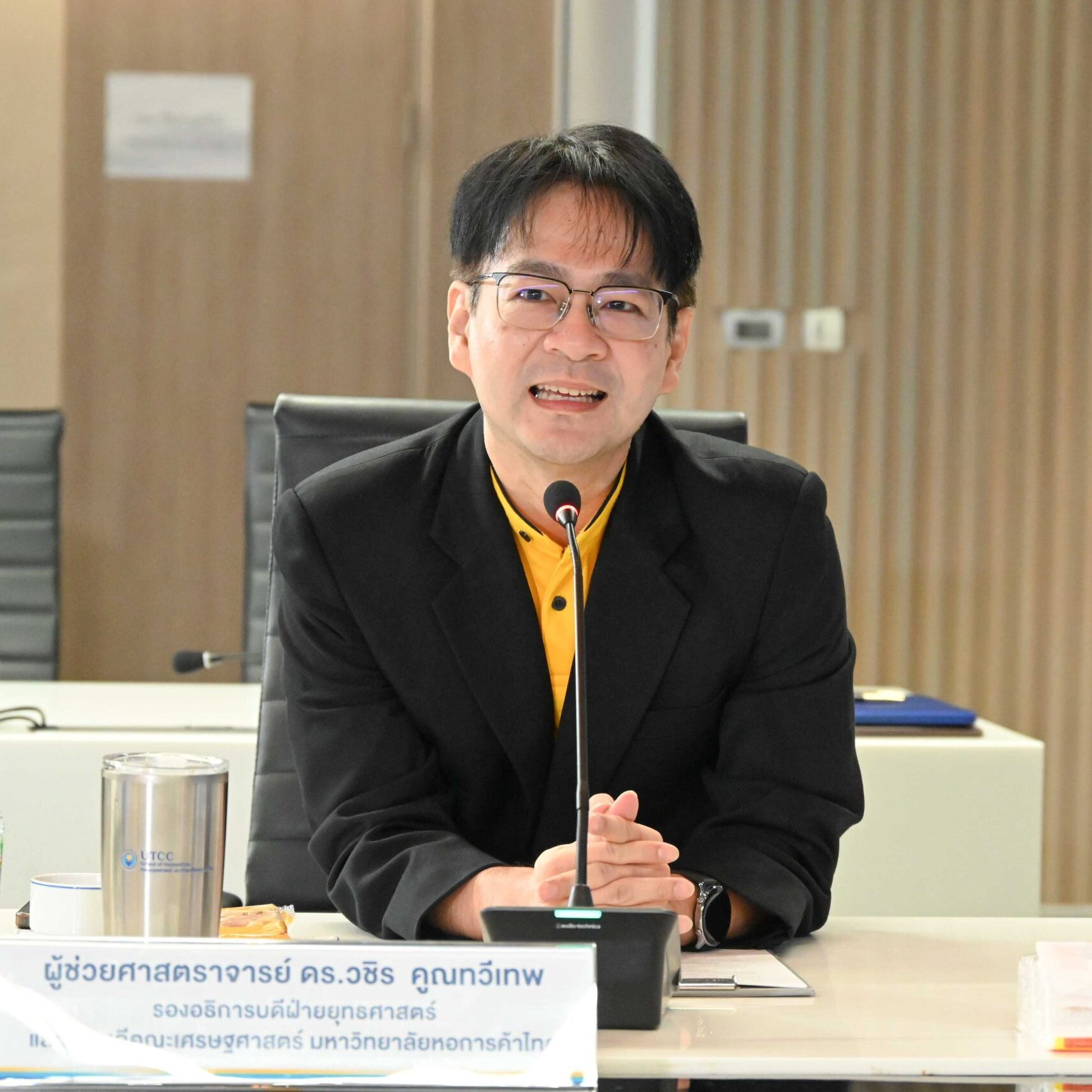 นอกจากนี้ ยังมีนายเมธี จารุบุณย์ ที่ปรึกษาอธิการบดีด้าน Ai และการตลาด พร้อมด้วยคณาจารย์จากคณะเศรษฐศาสตร์เข้าร่วมในพิธี ณ (อาคารสัญลักษณ์) อาคาร 24 ชั้น 15 เมื่อวันที่ 20 มีนาคม 2569