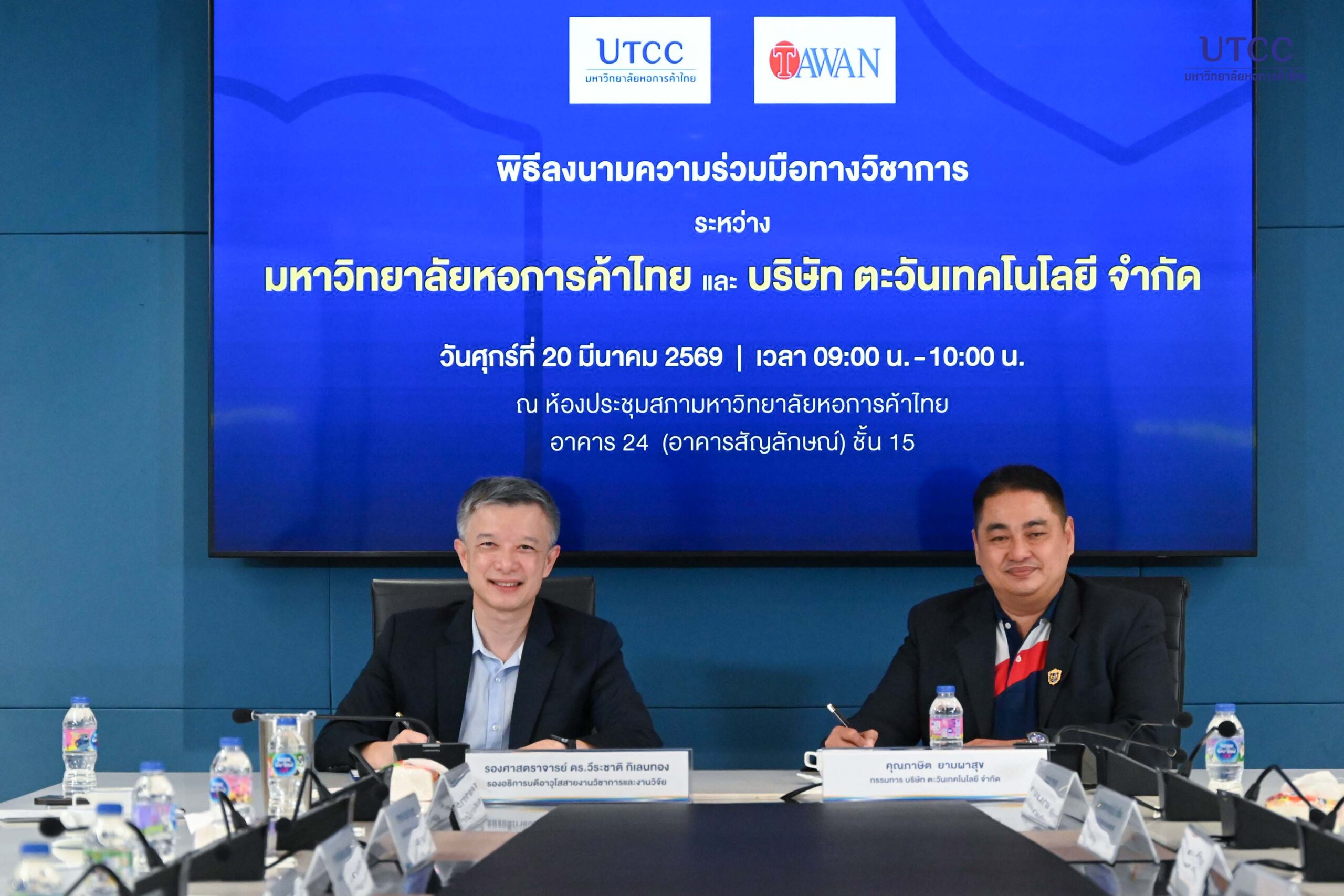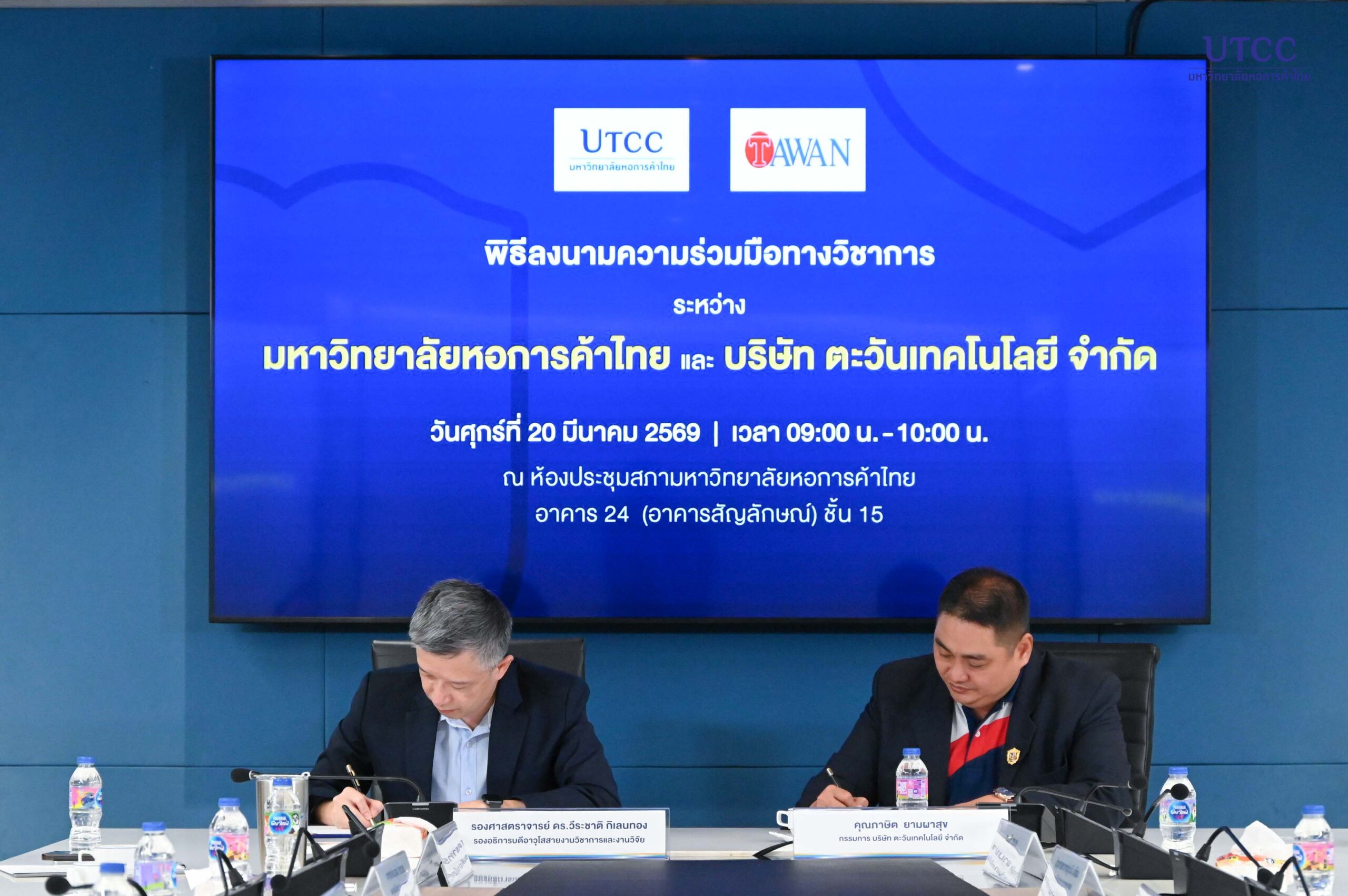 คณะเศรษฐศาสตร์ มหาวิทยาลัยหอการค้าไทย จัดพิธีลงนามความร่วมมือทางวิชาการ (MOU) ระหว่าง มหาวิทยาลัยหอการค้าไทย กับ บริษัท ตะวันเทคโนโลยี จำกัด โดยมีเป้าหมายเพื่อยกระดับความร่วมมือด้านวิชาการ งานวิจัย และการพัฒนานวัตกรรม รวมถึงการพัฒนาศักยภาพบุคลากรและนักศึกษาให้พร้อมเข้าสู่ตลาดแรงงาน ตลอดจนการพัฒนาหลักสูตรร่วมกันในอนาคต