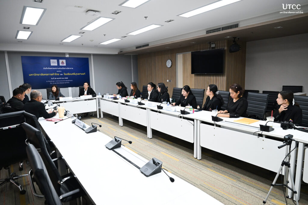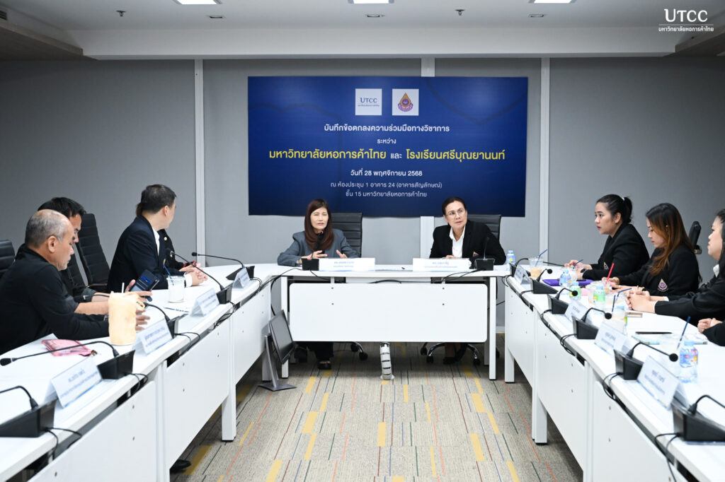 คณะวิศวกรรมศาสตร์ มหาวิทยาลัยหอการค้าไทย จัดพิธีลงนามบันทึกความร่วมมือทางวิชาการกับโรงเรียนศรีบุณยานนท์ เมื่อวันที่ 28 พฤศจิกายน 2568 ณ ห้องประชุม 1 อาคาร 24 ชั้น 15 โดยมีวัตถุประสงค์เพื่อกระชับความสัมพันธ์ระหว่างทั้งสองสถาบัน พร้อมร่วมกันสนับสนุนกิจกรรมแนะแนวการศึกษาต่อ และส่งเสริมองค์ความรู้ให้แก่นักเรียนที่สนใจด้านวิศวกรรมศาสตร์ การบริหารธุรกิจ และสาขาอื่น ๆ ในอนาคต พิธีลงนามได้รับเกียรติจาก