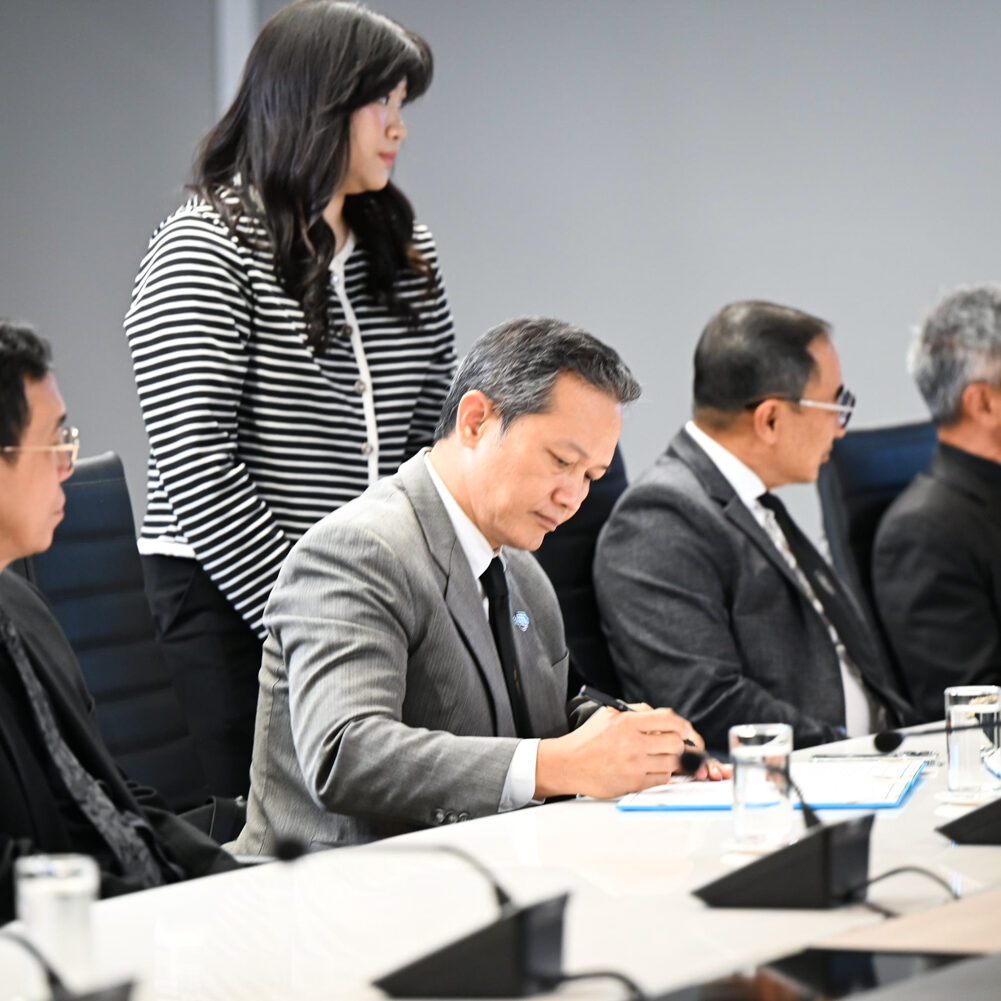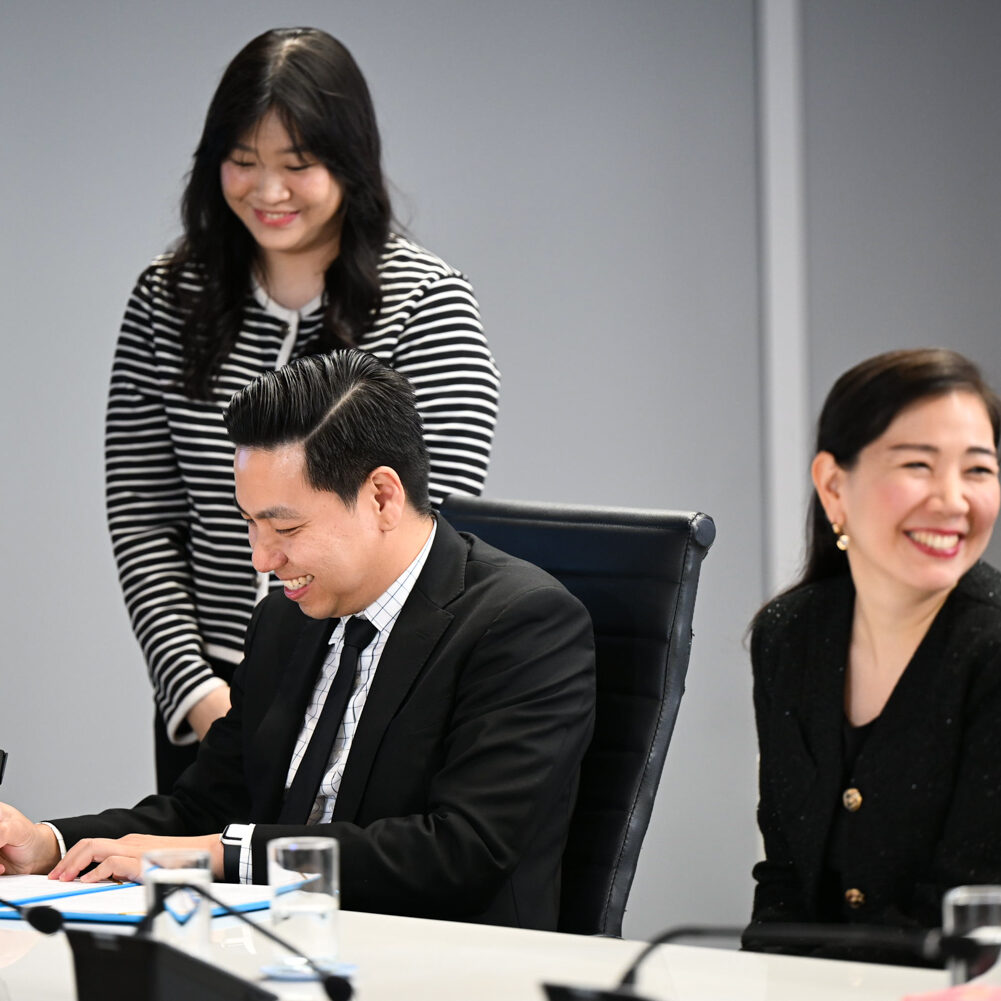 ภายในพิธี รองศาสตราจารย์ ดร.ธนวรรธน์ พลวิชัย อธิการบดีมหาวิทยาลัยหอการค้าไทย ลงนามร่วมกับ ผู้ช่วยศาสตราจารย์ วิษณุ วงศ์สินศิริกุล เลขาธิการคณะกรรมการการแข่งขันทางการค้า โดยมี ผู้ช่วยศาสตราจารย์ ดร.ประพันธ์พงษ์ ขำอ่อน คณบดีคณะนิติศาสตร์ และ นายมนยศ วรรธนะภูติ รองเลขาธิการคณะกรรมการการแข่งขันทางการค้า ร่วมเป็นสักขีพยาน พร้อมคณาจารย์คณะนิติศาสตร์ ณ ห้องประชุมสภามหาวิทยาลัย อาคาร 24 ชั้น 15 เมื่อวันที่ 17 พฤศจิกายน 2568