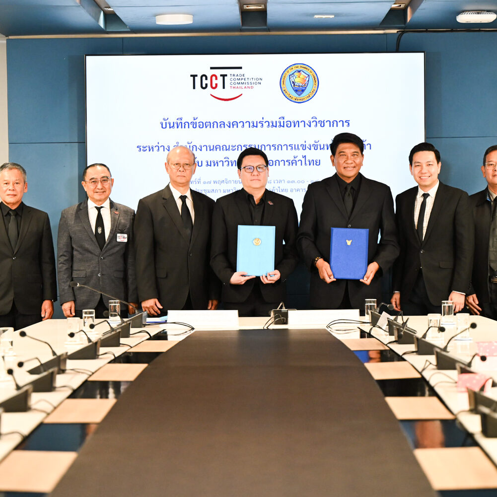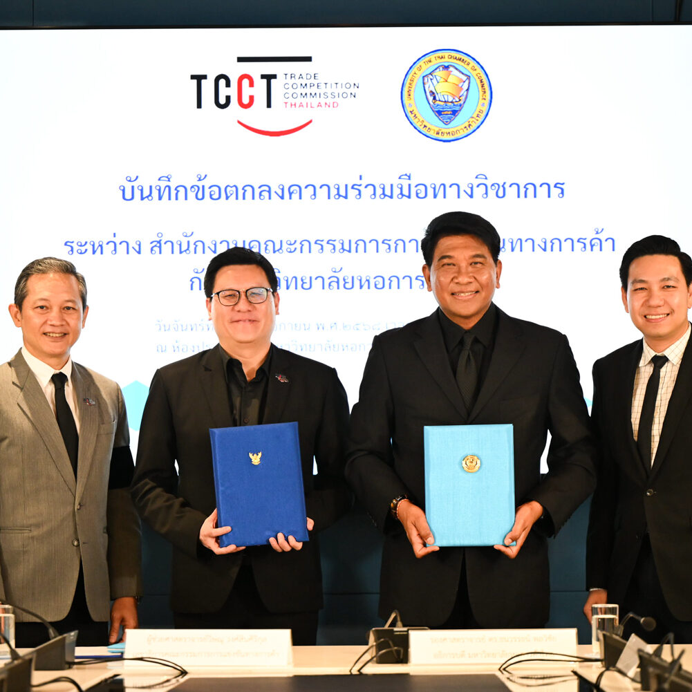 คณะนิติศาสตร์ มหาวิทยาลัยหอการค้าไทย จัดพิธีลงนามบันทึกความเข้าใจ (MOU) ว่าด้วยความร่วมมือทางวิชาการ ระหว่างมหาวิทยาลัยหอการค้าไทยกับสำนักงานคณะกรรมการการแข่งขันทางการค้า เพื่อร่วมพัฒนาหลักสูตร การเรียนการสอน และการวิจัย ให้สอดคล้องกับบริบทการแข่งขันทางการค้าในยุคปัจจุบัน