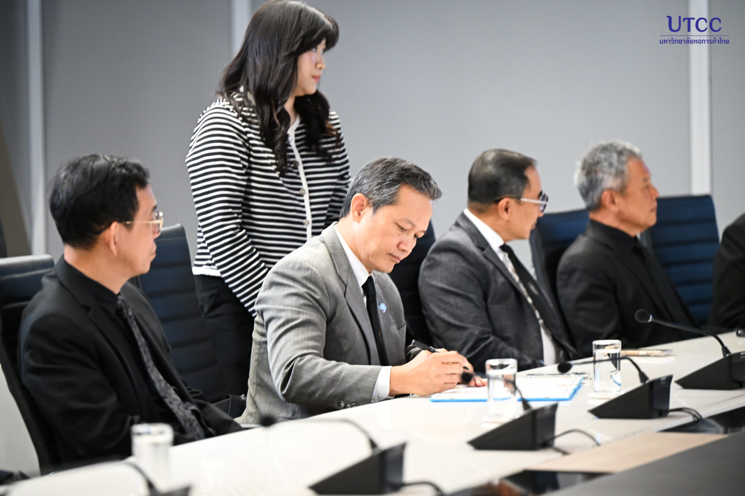 ภายในพิธี รองศาสตราจารย์ ดร.ธนวรรธน์ พลวิชัย อธิการบดีมหาวิทยาลัยหอการค้าไทย ลงนามร่วมกับ ผู้ช่วยศาสตราจารย์ วิษณุ วงศ์สินศิริกุล เลขาธิการคณะกรรมการการแข่งขันทางการค้า โดยมี ผู้ช่วยศาสตราจารย์ ดร.ประพันธ์พงษ์ ขำอ่อน คณบดีคณะนิติศาสตร์ และ นายมนยศ วรรธนะภูติ รองเลขาธิการคณะกรรมการการแข่งขันทางการค้า ร่วมเป็นสักขีพยาน พร้อมคณาจารย์คณะนิติศาสตร์ ณ ห้องประชุมสภามหาวิทยาลัย อาคาร 24 ชั้น 15 เมื่อวันที่ 17 พฤศจิกายน 2568
