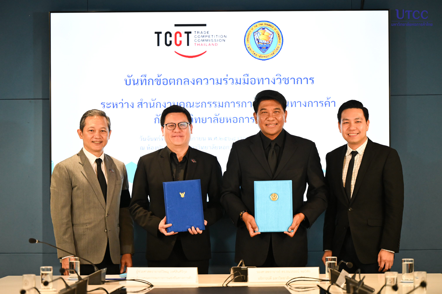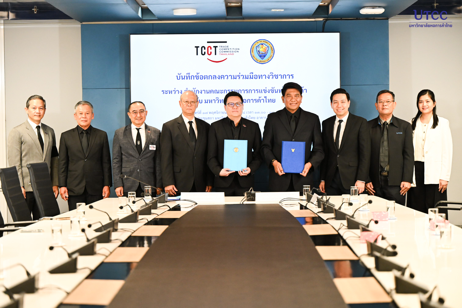 คณะนิติศาสตร์ มหาวิทยาลัยหอการค้าไทย จัดพิธีลงนามบันทึกความเข้าใจ (MOU) ว่าด้วยความร่วมมือทางวิชาการ ระหว่างมหาวิทยาลัยหอการค้าไทยกับสำนักงานคณะกรรมการการแข่งขันทางการค้า เพื่อร่วมพัฒนาหลักสูตร การเรียนการสอน และการวิจัย ให้สอดคล้องกับบริบทการแข่งขันทางการค้าในยุคปัจจุบัน