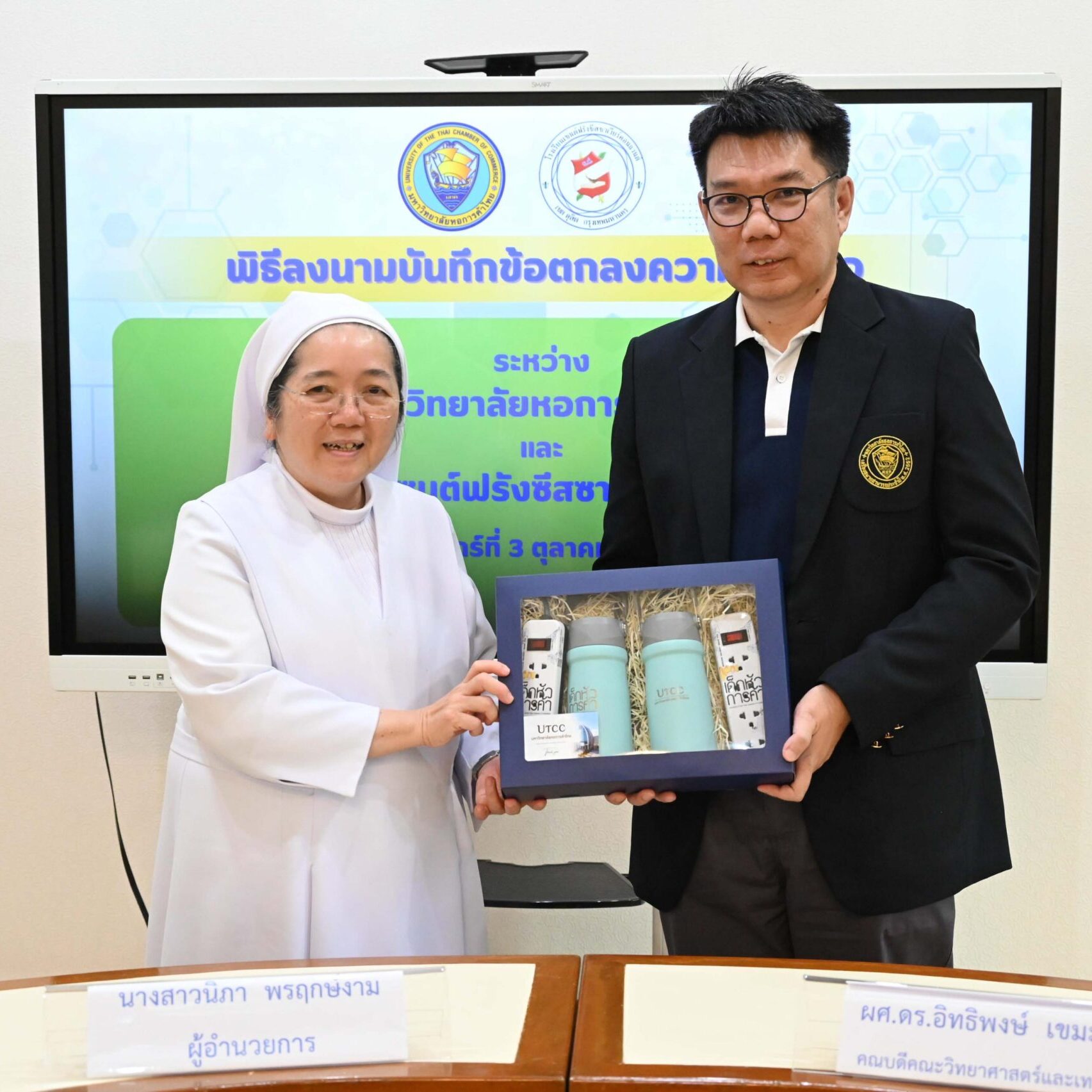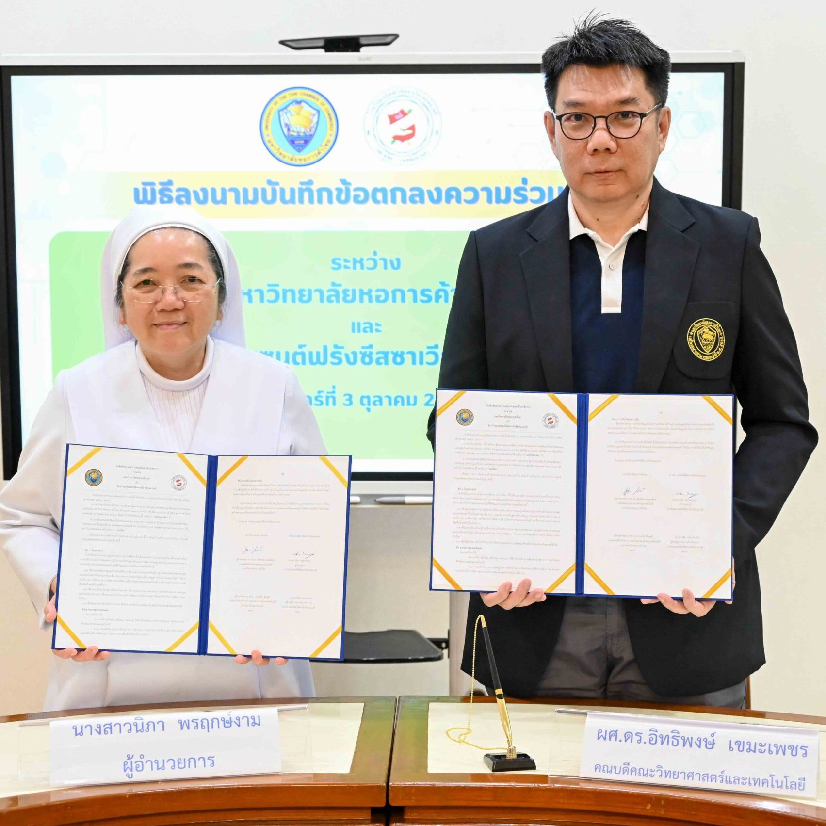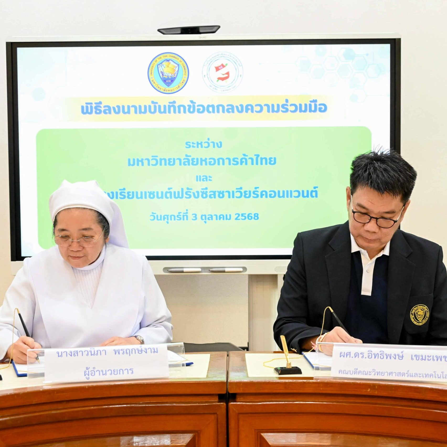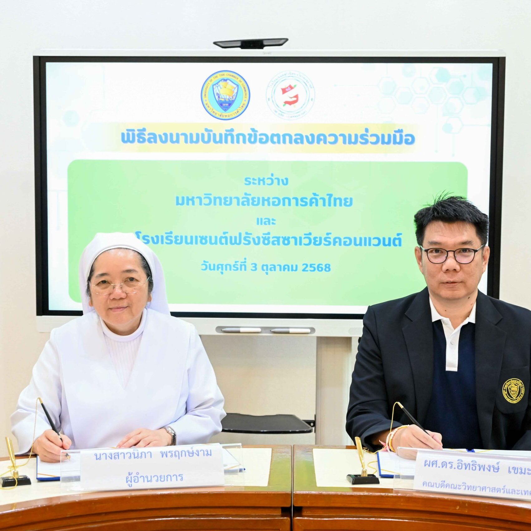 มหาวิทยาลัยหอการค้าไทย โดยคณะวิทยาศาสตร์และเทคโนโลยี ร่วมในพิธีลงนามความร่วมมือ (MOU) ด้านวิชาการ ระหว่างมหาวิทยาลัยหอการค้าไทย กับโรงเรียนเซนต์ฟรังซีสซาเวียร์คอนแวนต์ เพื่อร่วมกันพัฒนาครูและนักเรียนให้มีความรู้ ความสามารถ และส่งเสริมทักษะด้านวิทยาศาสตร์และเทคโนโลยี ตลอดจนแลกเปลี่ยนเรียนรู้ด้านเนื้อหาในรายวิชา วิธีการเรียนการสอน รวมถึงความสนใจด้านวิทยาศาสตร์และเทคโนโลยีของนักเรียน อีกทั้งยังเปิดโอกาสให้มหาวิทยาลัยหอการค้าไทยเข้าร่วมประชาสัมพันธ์และจัดกิจกรรมพัฒนาทักษะด้านวิทยาศาสตร์และเทคโนโลยี