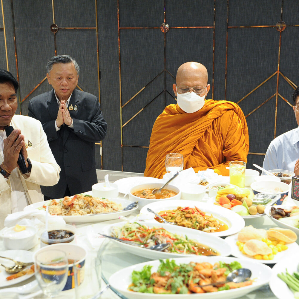 โดยในพิธีครั้งนี้ คณะกรรมการจัดงานได้รับเมตตาจาก พระพรหมวชิรรังษี เจ้าอาวาสวัดบวรนิเวศวิหาร พร้อมด้วยคณะพระสงฆ์จากวัดบวรนิเวศวิหาร มาฉันภัตตาหารเพล ณ มหาวิทยาลัยหอการค้าไทย เพื่อความเป็นสิริมงคลและเป็นการเฉลิมฉลองพระใหม่ในโครงการฯ