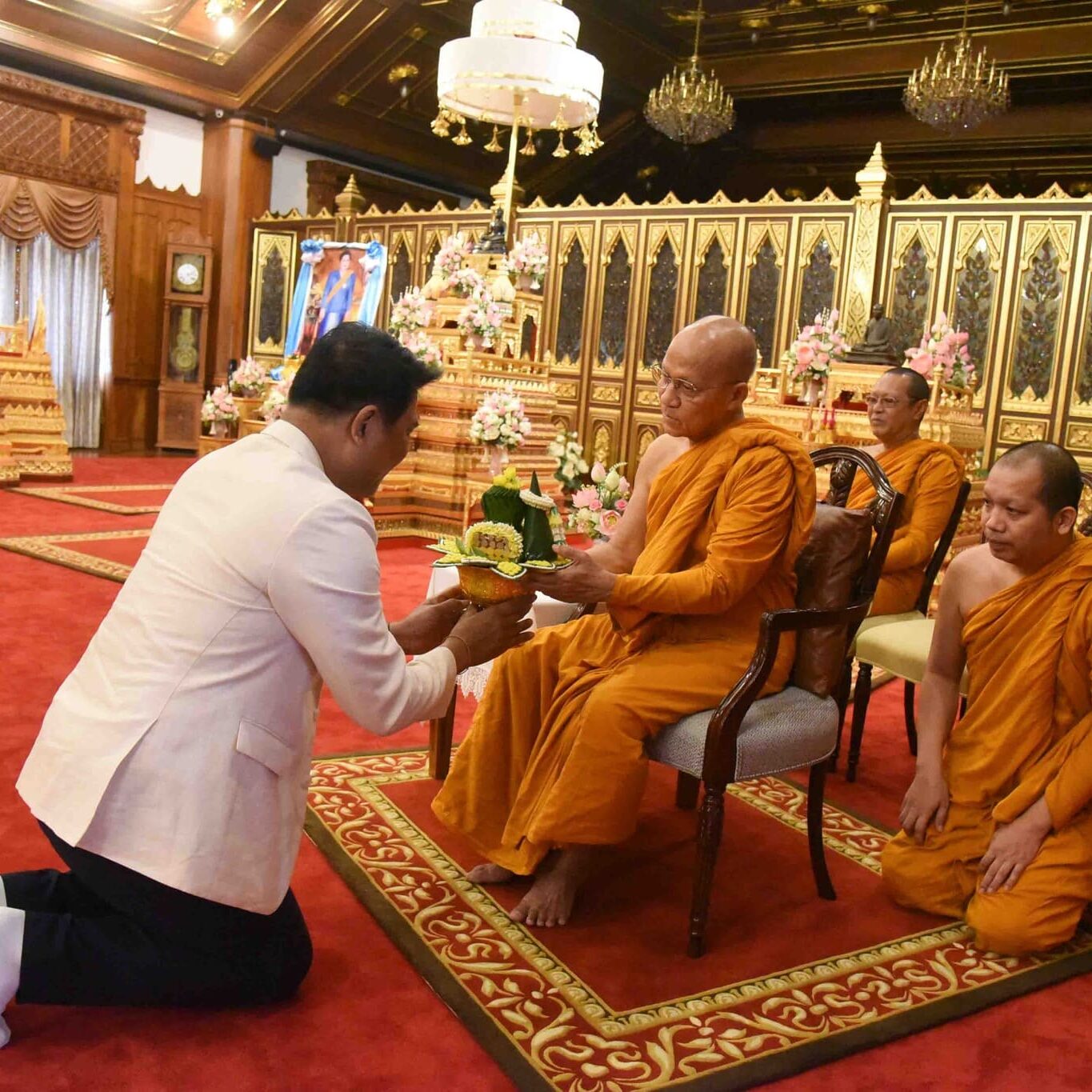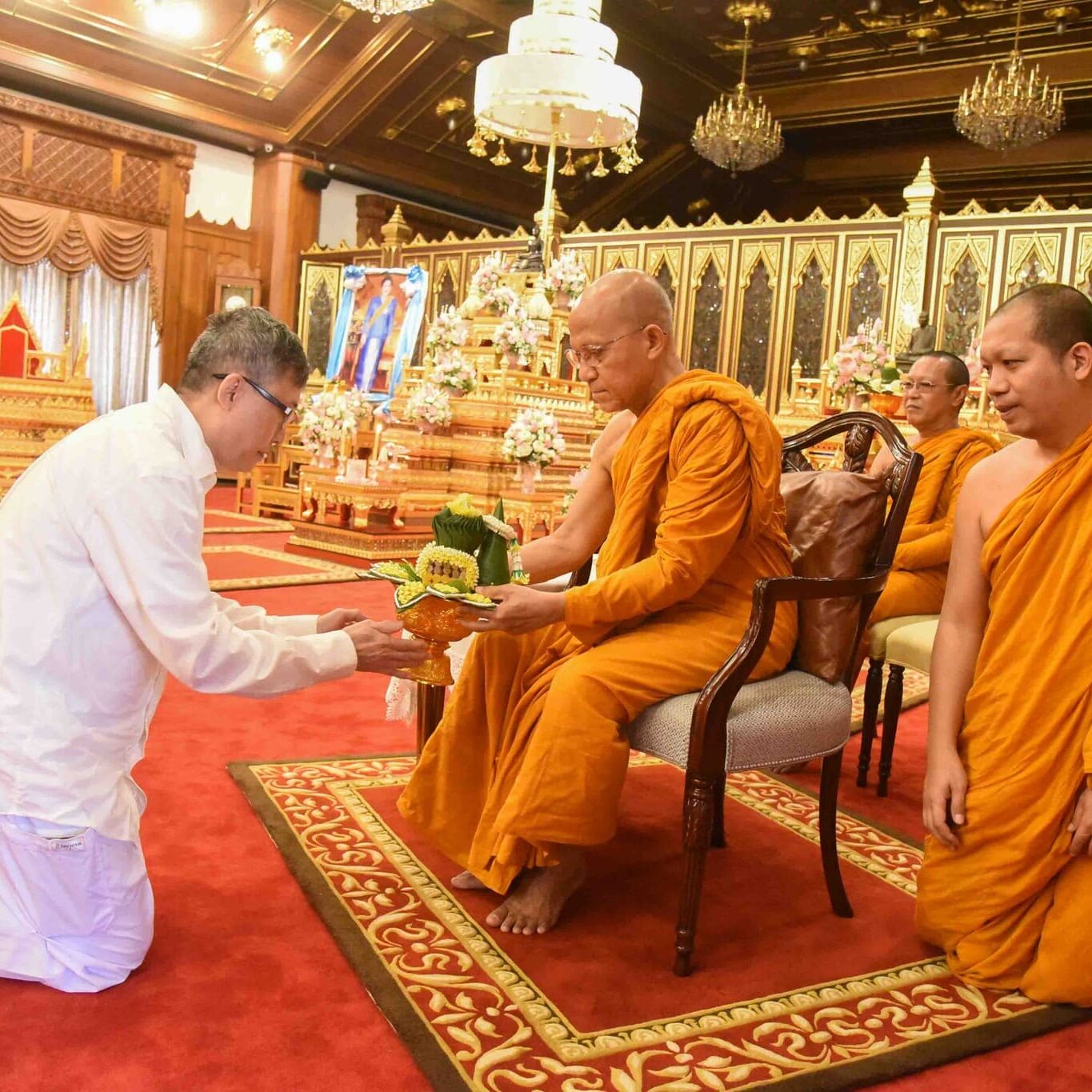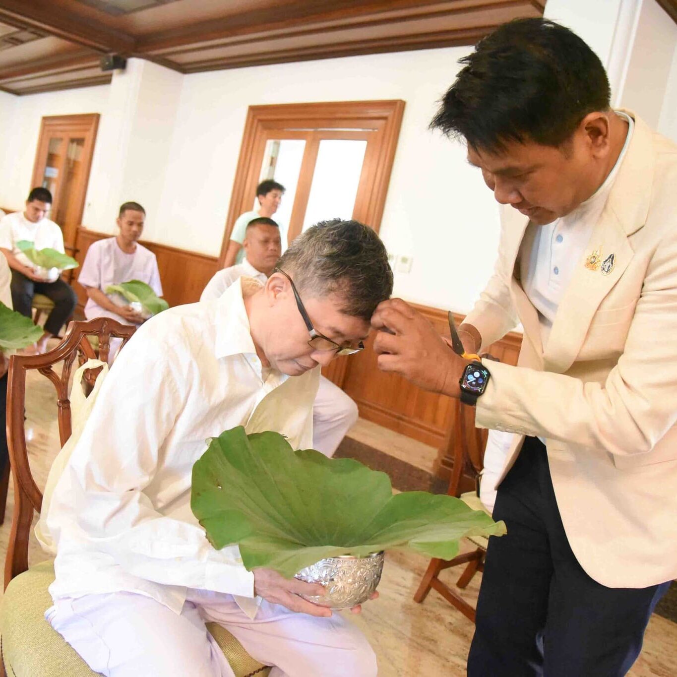 รองศาสตราจารย์ ดร.ธนวรรธน์ พลวิชัย อธิการบดี มหาวิทยาลัยหอการค้าไทย กล่าวถวายรายงานในพิธีถวายตัวนาค และปลงผมนาค แด่ พระพรหมวชิรรังษี เจ้าอาวาสวัดบวรนิเวศวิหาร และกรรมการมหาเถรสมาคม โครงการบรรพชาอุปสมบทหมู่ ประจำปี 2568 รุ่นที่ 18 เฉลิมพระเกียรติ สมเด็จพระนางเจ้าสิริกิติ์ พระบรมราชินีนาถ พระบรมราชชนนีพันปีหลวง เนื่องในโอกาสมหามงคลเฉลิมพระชนมพรรษา 93 พรรษา 12 สิงหาคม 2568 จัดโดย มหาวิทยาลัยหอการค้าไทย (ระยะเวลา 15 วัน ระหว่างวันที่ 29 สิงหาคม 2568 – วันที่ 12 กันยายน 2568)