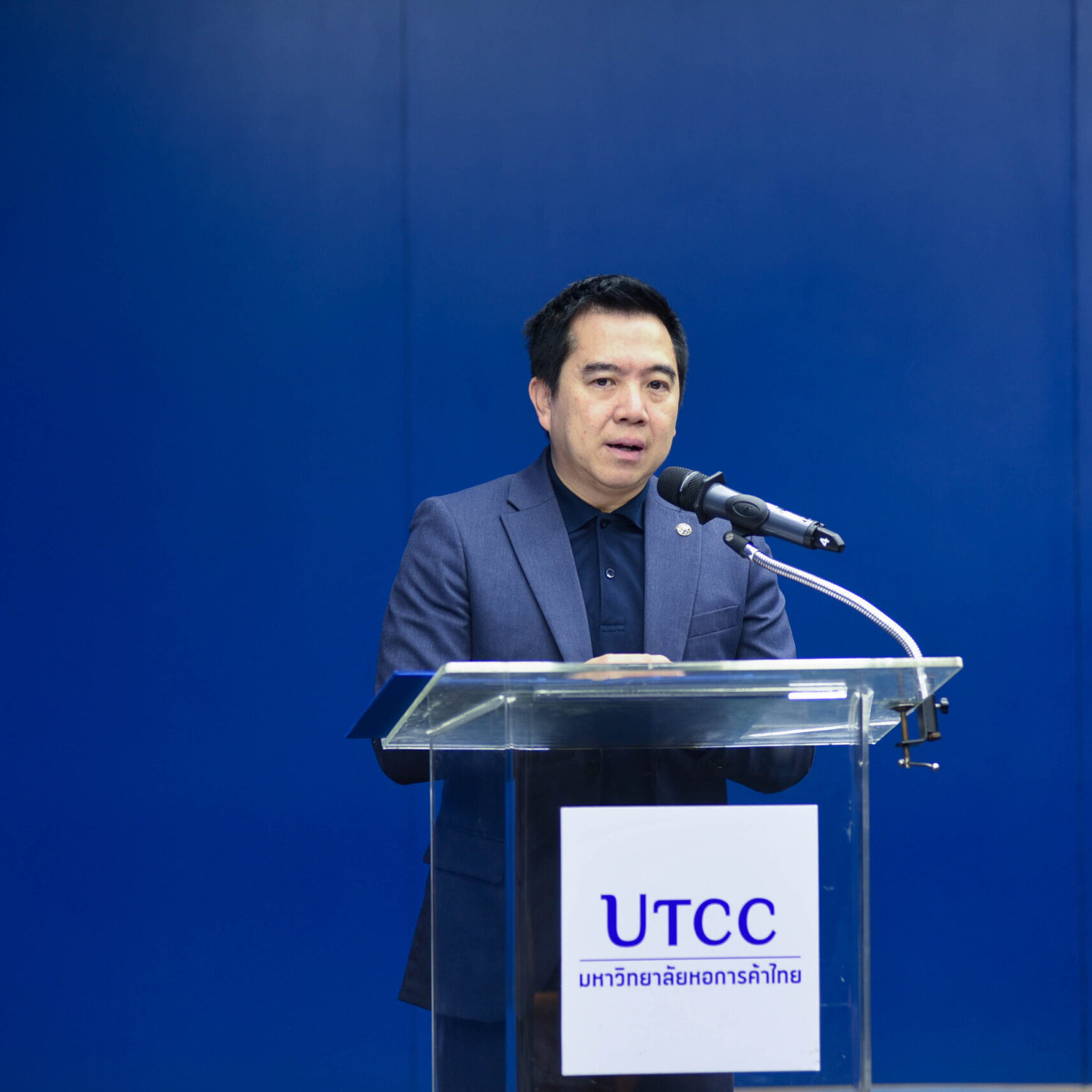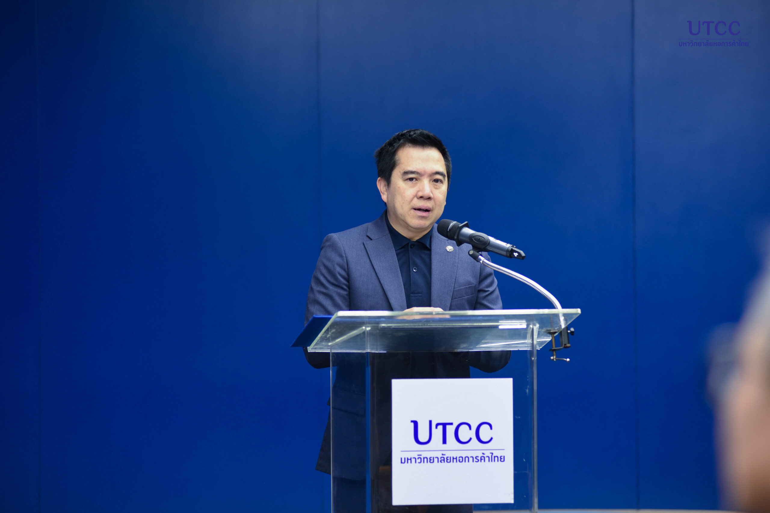 ดร.พีรพงษ์ ฟูศิริ คณบดีคณะวิทยพัฒน์ มหาวิทยาลัยหอการค้าไทย กล่าวเปิดงานเสวนาและมอบรางวัลให้กับผู้เข้าร่วมโครงการผู้มีส่วนได้ส่วนเสียที่สนับสนุนการพัฒนาการเรียนรู้