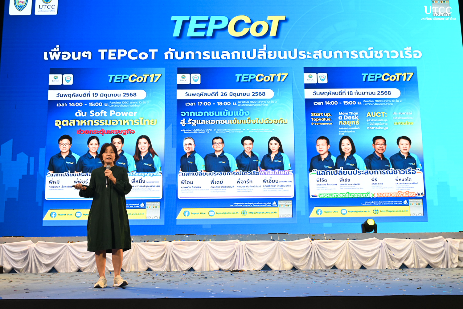 ภายในงานได้รับเกียรติจาก ดร.พจน์ อร่ามวัฒนานนท์ ประธานกรรมการหอการค้าไทยและสภาหอการค้าแห่งประเทศไทย และนายกสภามหาวิทยาลัยหอการค้าไทย กล่าวต้อนรับผู้เข้าร่วมการอบรม ร่วมด้วย คุณภูมินทร์ หะรินสุต รองประธานกรรมการหอการค้าไทย และประธานหลักสูตร TEPCoT, รองศาสตราจารย์ ดร.ธนวรรธน์ พลวิชัย อธิการบดีมหาวิทยาลัยหอการค้าไทย โดยมี รองศาสตราจารย์ ดร.เสาวณีย์ ไทยรุ่งโรจน์ ที่ปรึกษาประจำสภามหาวิทยาลัยหอการค้าไทยและผู้อำนวยการหลักสูตร TEPCoT กล่าวถึงรายละเอียดต่างๆ ในการเข้าอบรมให้กับผู้เข้าร่วมอบรมได้รับทราบ และมีรุ่นพี่ TEPCoT 17 ร่วมกล่าวต้อนรับผู้เข้าอบรม ณ หอประชุมมหาวิทยาลัยหอการค้าไทย เมื่อวันที่ 12 มีนาคม 2569