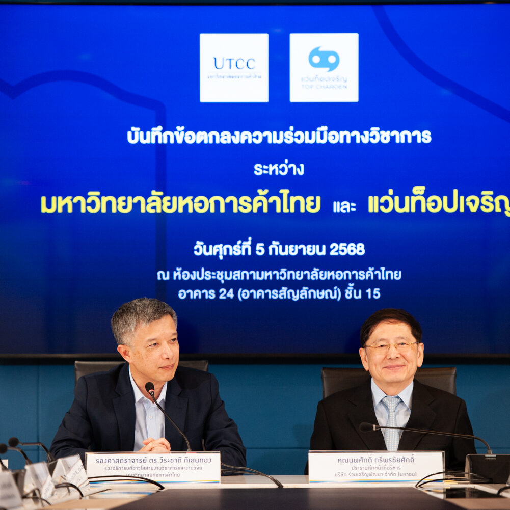 ภายในงานได้รับเกียรติจาก รองศาสตราจารย์ ดร.วีระชาติ กิเลนทอง รองอธิการบดีอาวุโสสายงานวิชาการและงานวิจัย ลงนามร่วมกับ นายนพศักดิ์ ตรีพรชัยศักดิ์ ประธานเจ้าหน้าที่บริหารบริษัท ร่วมเจริญพัฒนา จำกัด (มหาชน) โดยมี อาจารย์ ดร.เอกธิป สุขวารี รองอธิการบดีฝ่ายวิชาการ, ดร.พัชรี ตรีพรชัยศักดิ์ ประธานเจ้าหน้าที่สายงานการเงิน บริษัท ร่วมเจริญพัฒนา จำกัด (มหาชน) และผู้บริหารของทั้ง 2 องค์กร ร่วมเป็นสักขีพยาน ณ ห้องประชุมสภามหาวิทยาลัย อาคาร 24 ชั้น 15 เมื่อวันที่ 5 กันยายน 2568