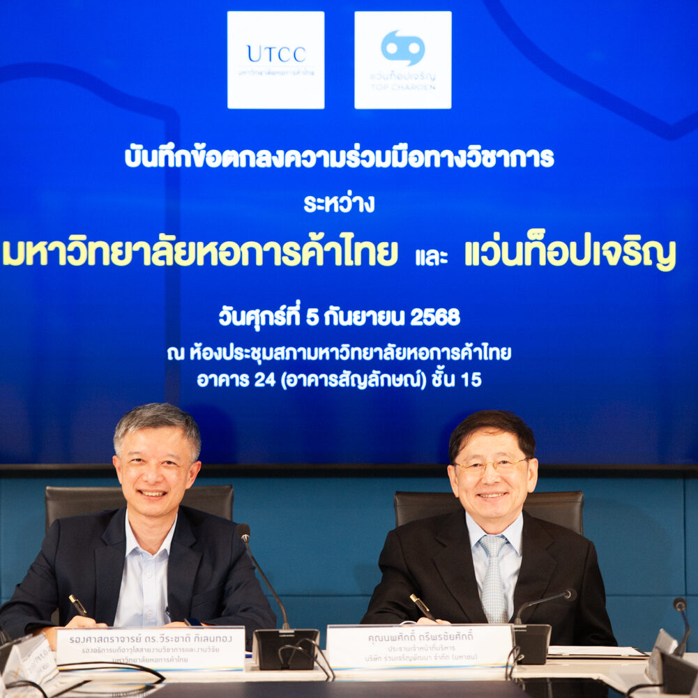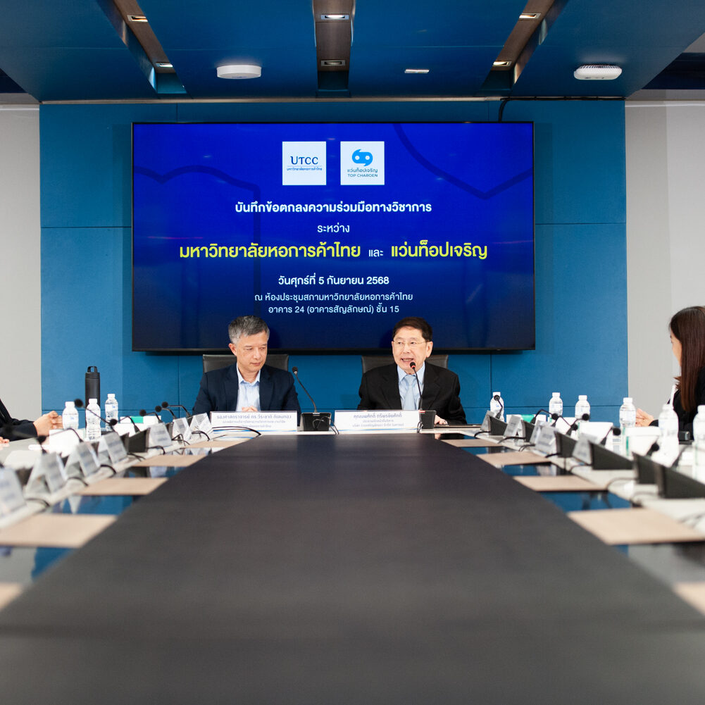 มหาวิทยาลัยหอการค้าไทย โดยฝ่ายวิชาการ จัดพิธีลงนามความร่วมมือระหว่างมหาวิทยาลัยหอการค้าไทย กับ บริษัท ร่วมเจริญพัฒนา จำกัด (มหาชน) หรือ แว่นท็อปเจริญ โดยมีวัตถุประสงค์เพื่อผลิตบัณฑิตให้สอดคล้องกับความต้องการของตลาดแรงงานสากล รวมถึงการเปิดโอกาสให้นักศึกษา ได้ฝึกปฏิบัติงาน และได้รับการถ่ายทอดความรู้จากผู้มีประสบการณ์ในวิชาชีพในระหว่างเรียน เพื่อเป็นการเสริมสร้างความรู้ ทักษะ และประสบการณ์ของนักศึกษาอีกด้วย