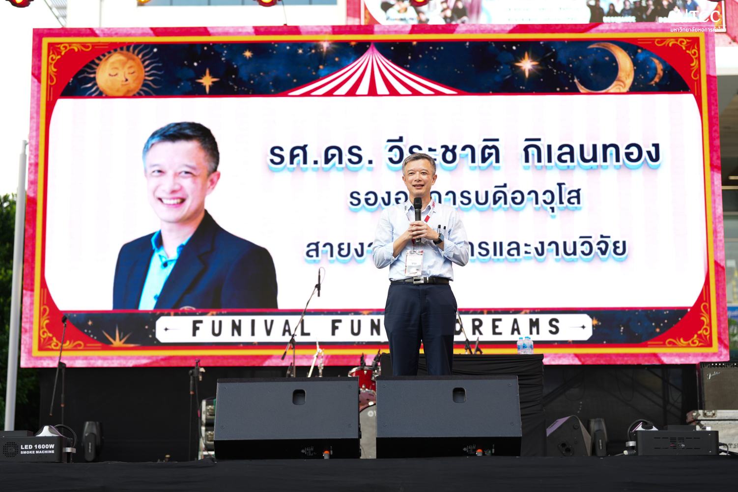 ภายในงานได้รับเกียรติจาก รองศาสตราจารย์ ดร.วีระชาติ กิเลนทอง รองอธิการบดีอาวุโสสายงานวิชาการและงานวิจัย ให้เกียรติมาเป็นประธานในพิธีเปิดกิจกรรม โดยมี อาจารย์ที่ปรึกษาชมรมต่างๆ ทีมงานสโมสรนักศึกษา และนักศึกษาจากคณะต่างๆ เข้าร่วมในโครงการฯ ณ สนามหญ้าหน้าอาคาร 24 เมื่อวันที่ 19 มีนาคม 2569